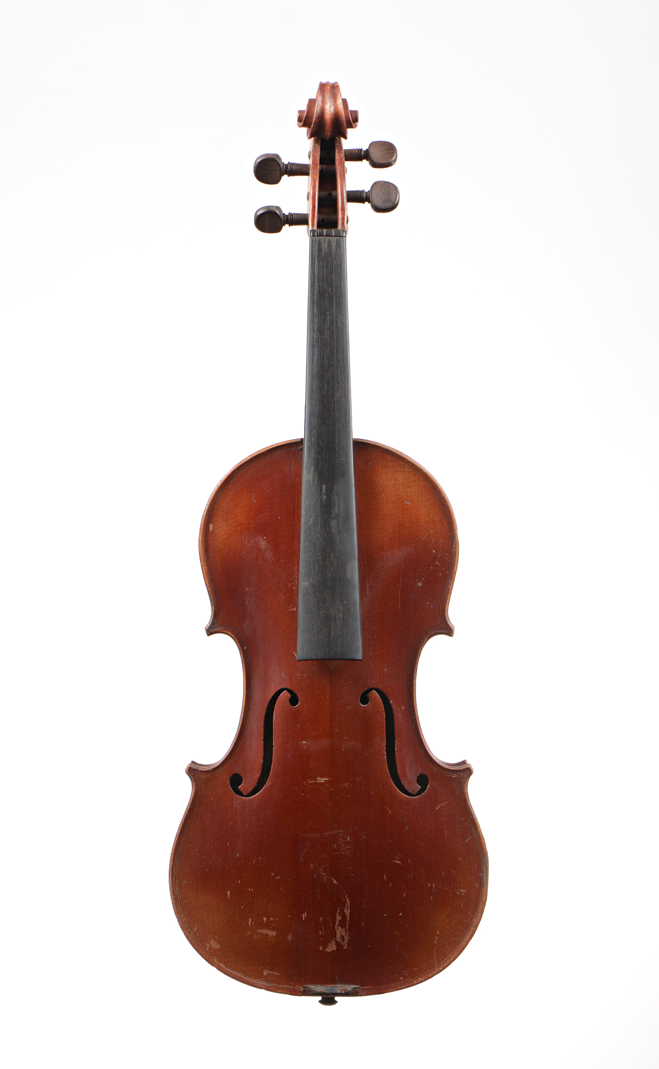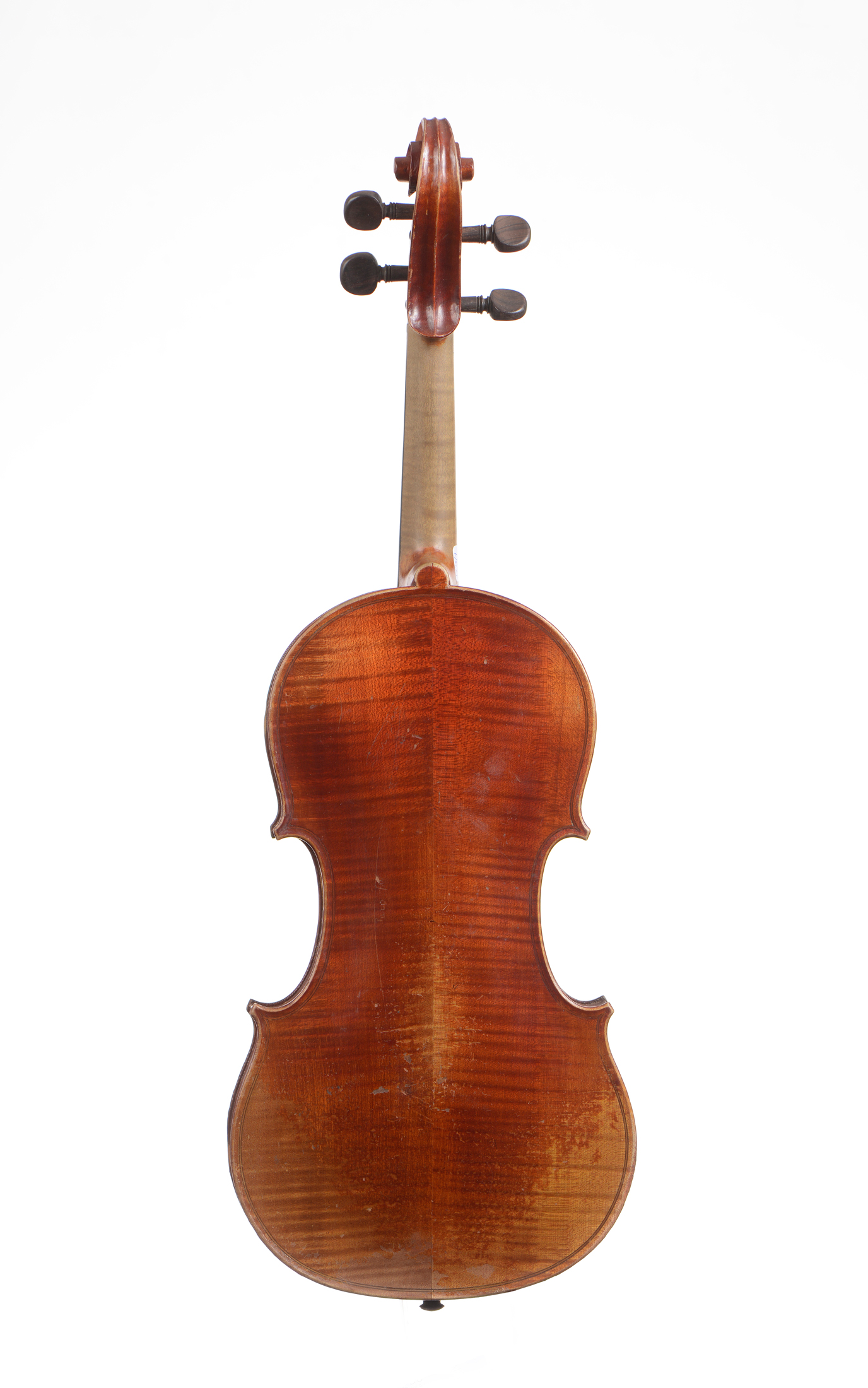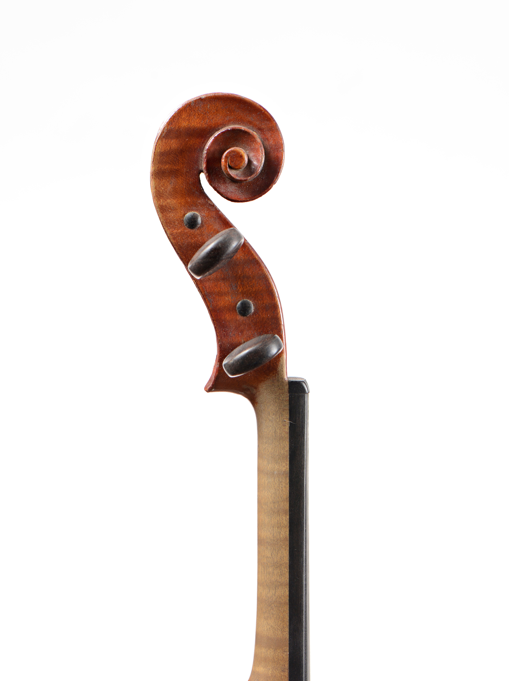 portant une étiquette "Jean Baptiste Vuillaume à Paris, 3 rue Demours-Ternes...". Fond de deux pièces. Vernis brun rouge sur fond doré. Petite cassure sur la table. 359 mm.