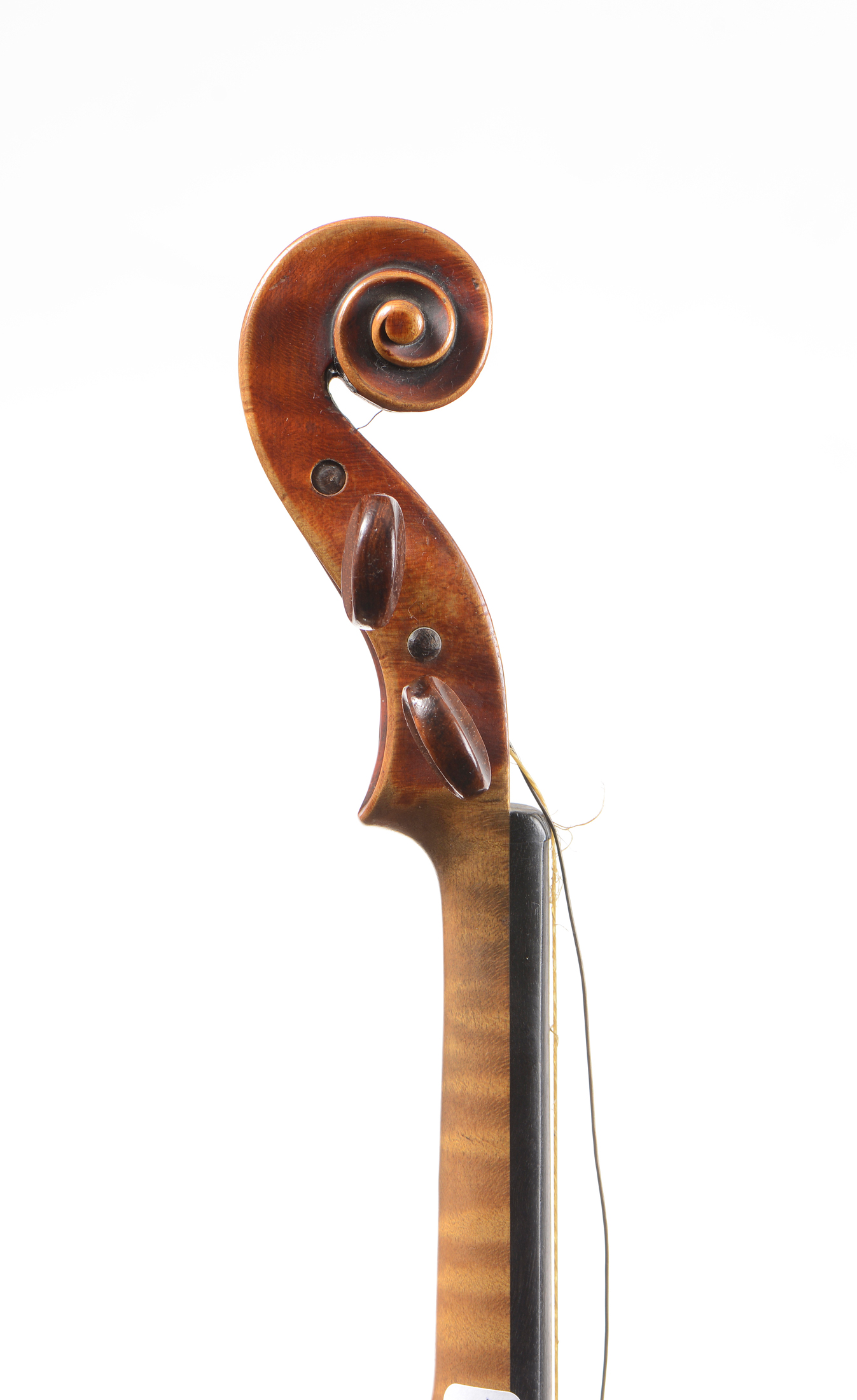 portant une étiquette apocryphe de ZANETTO. Fond d'une pièce. Une couche de vernis ajoutée plus récemment. Vernis brun rouge sur fond doré. 358 mm.