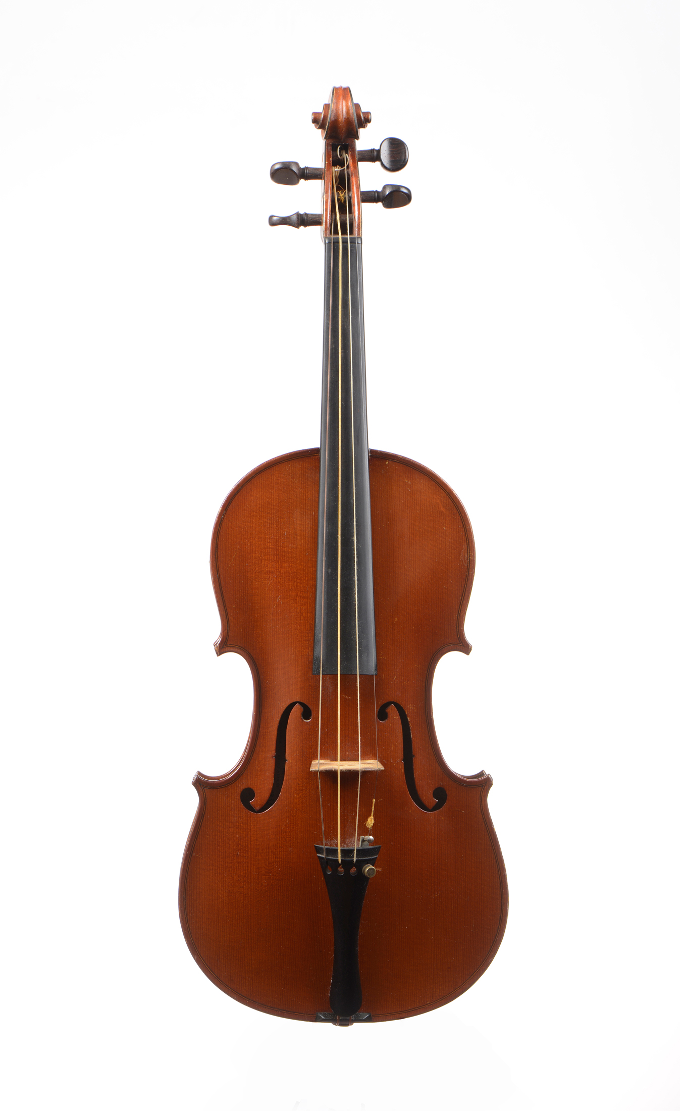 fait à Mirecourt, dont il porte l'étiquette Lutherie d'art "JEAN LARCHER, 1933, numéro 153" et une seconde étiquette "perfectionné par la barre d'harmonie rationnelle". Numéro 4811. Bon état général. 360 mm.