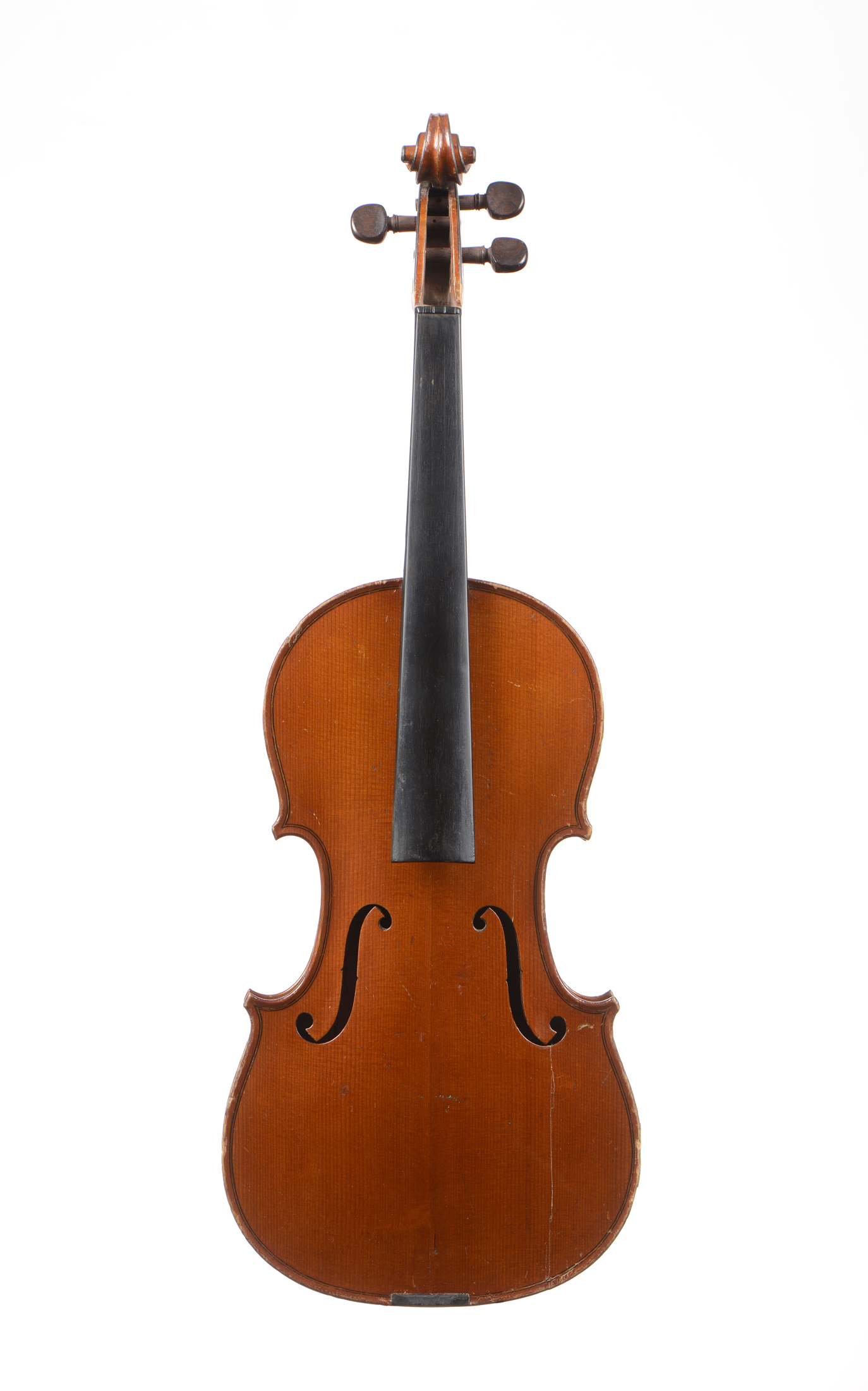 dont il porte l'étiquette " Chipot Vuillaume. Gendre de J.B VUILLAUME. A Paris." Fond d'une pièce. Vernis brun doré. Deux cassures de table, au flanc du bas, et une petite à l'f. Usures. 359 mm.