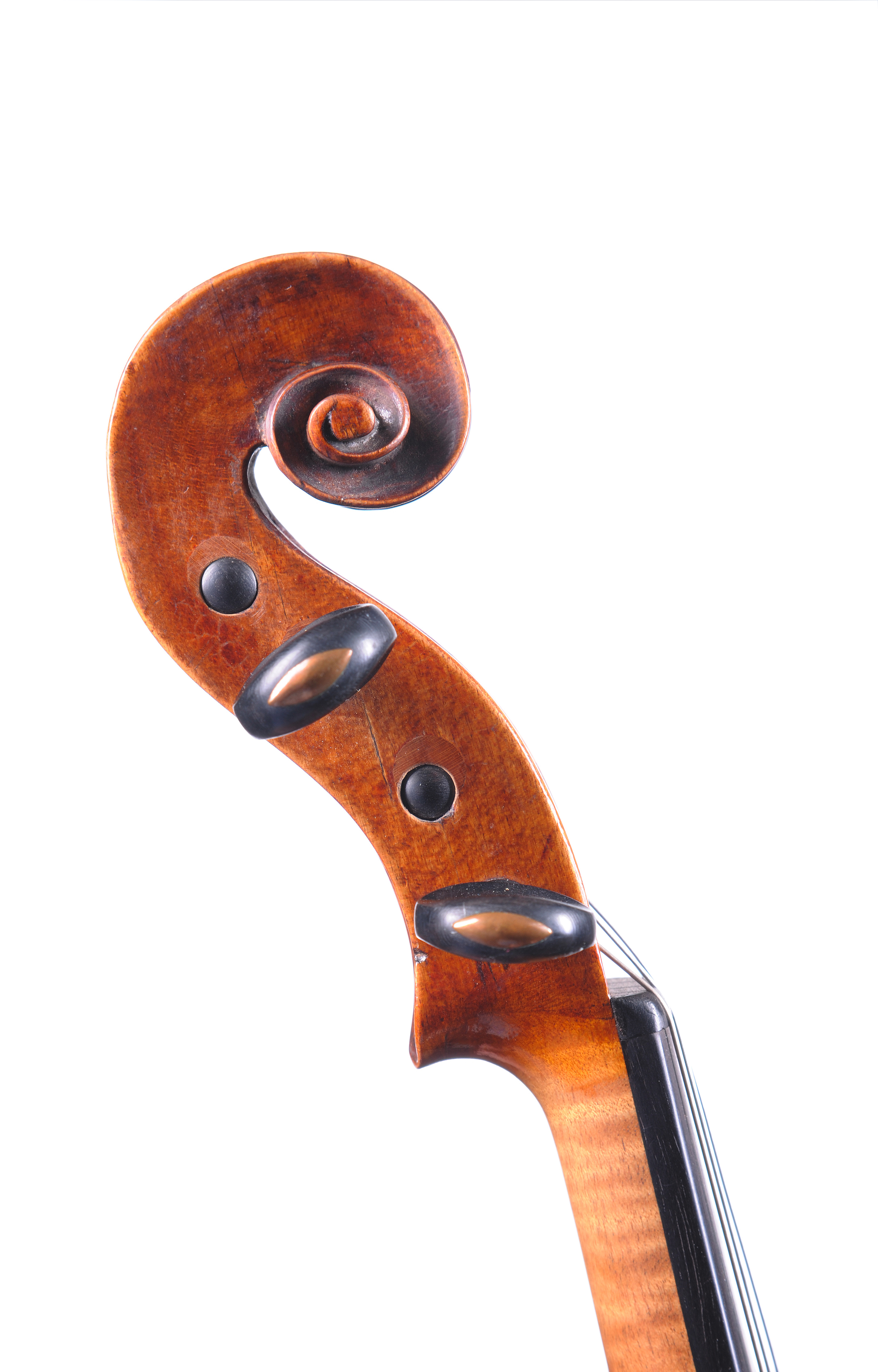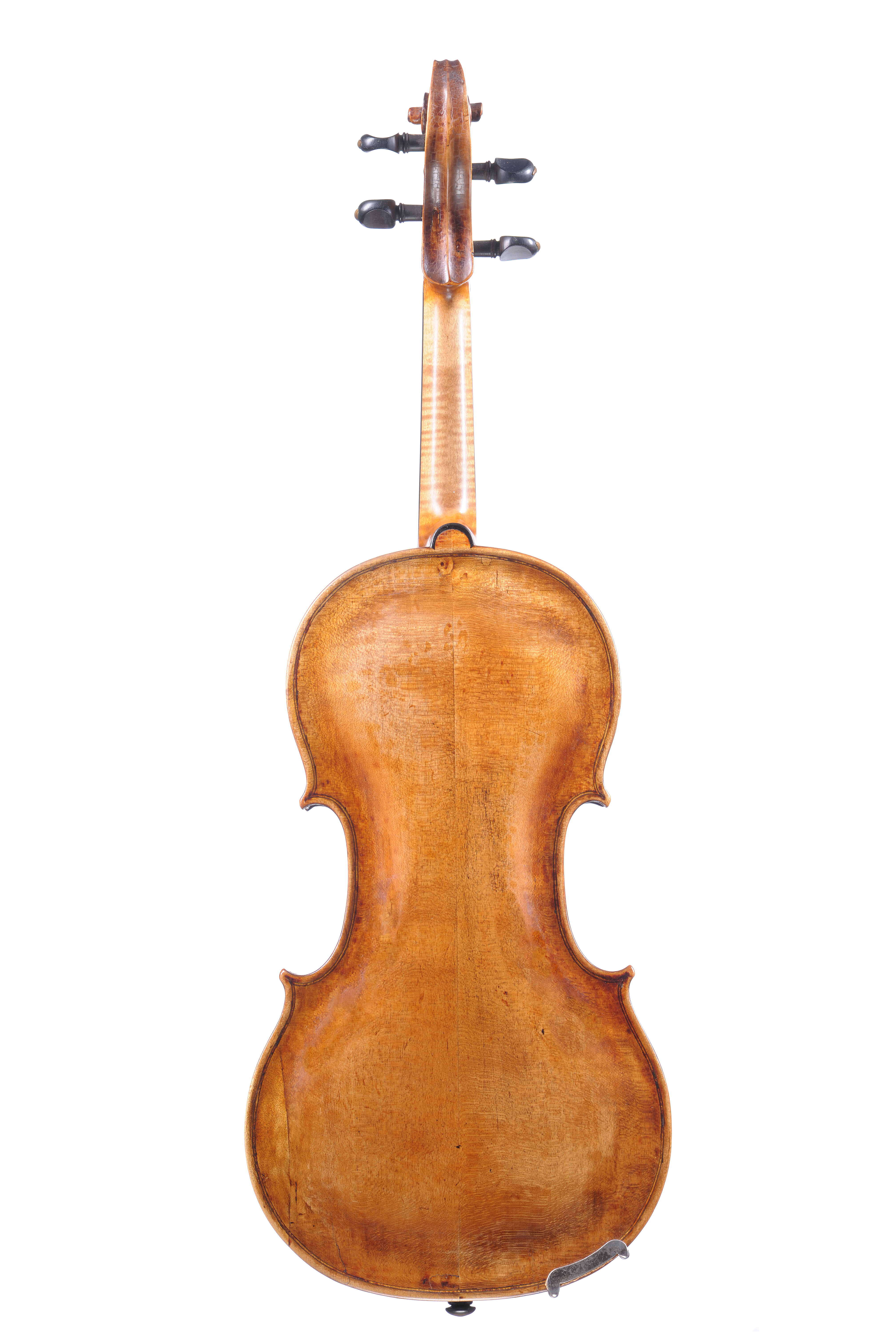 Violon XVIIIe fait à Mittenwald, portant une étiquette de Altmeister - violins. Chevalet fait par Vatelot et fils, à Paris. Fond de deux pièces. 357 m. Vernis brun doré.