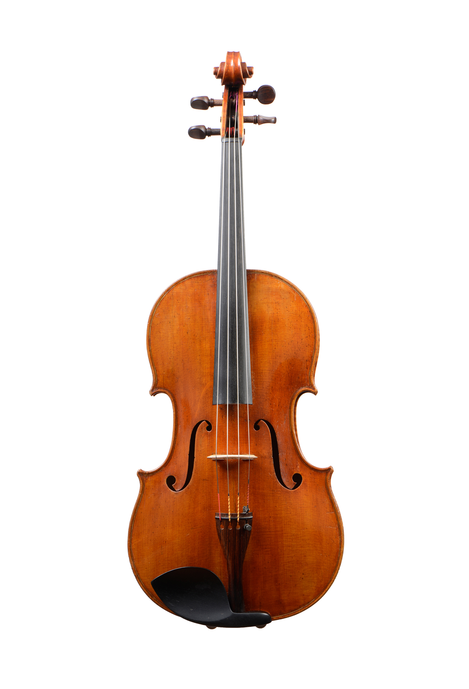 Intéressant alto fait anonymement, en deuxième partie du XXe, sur un modèle de Montagnana. Fond de deux pièces. 412 mm. Cassure réparée sous la mentonnière, et petite cassure réparée partant du sillet du bas, Joint de la table restauré.
