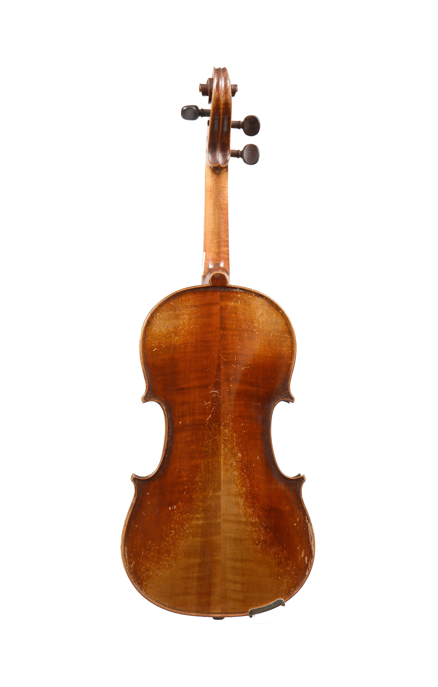Portant une étiquette "modèle d'après Stradivarius...". Fond de deux pièces. Vernis brun sur fond doré. 358 mm.