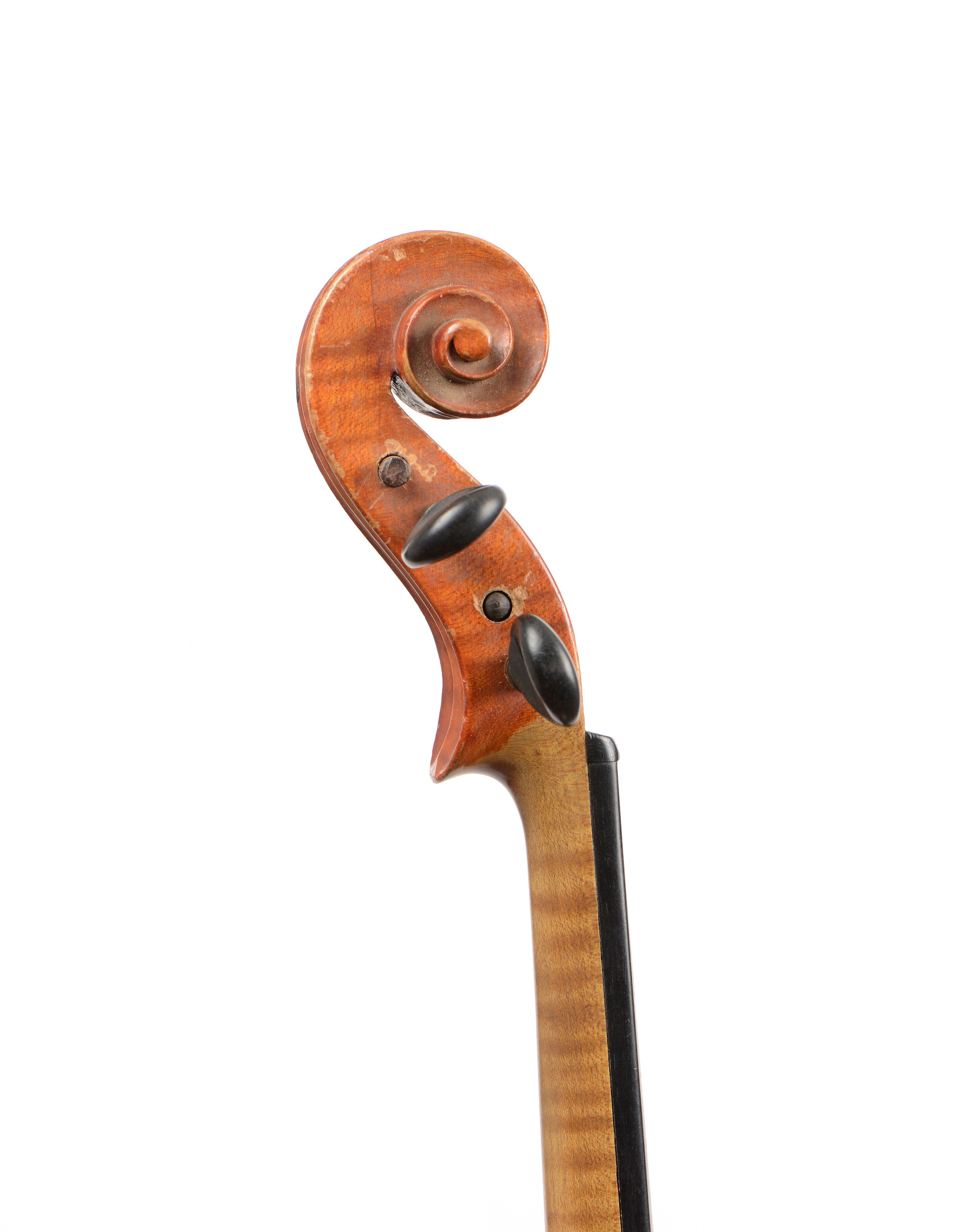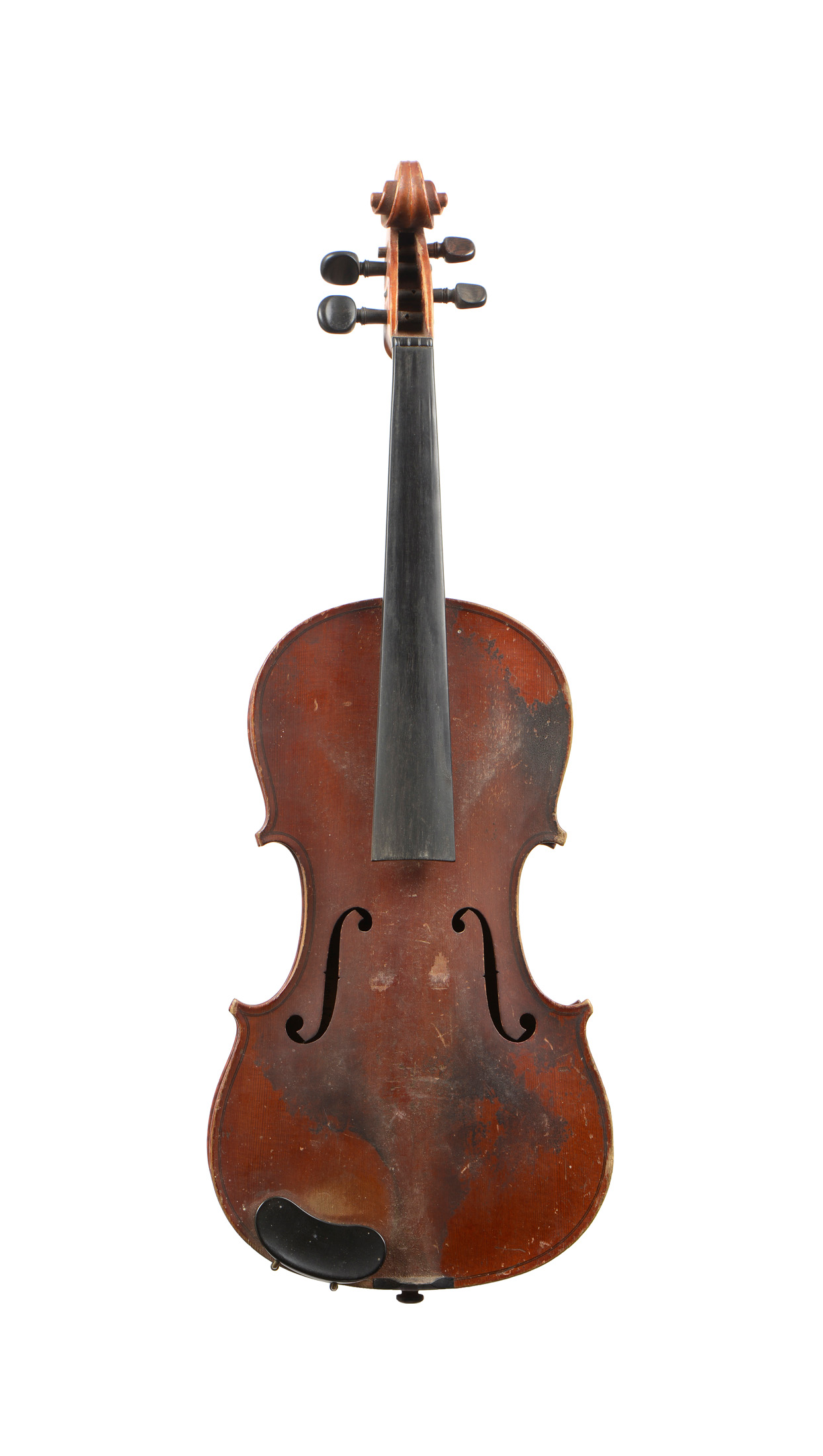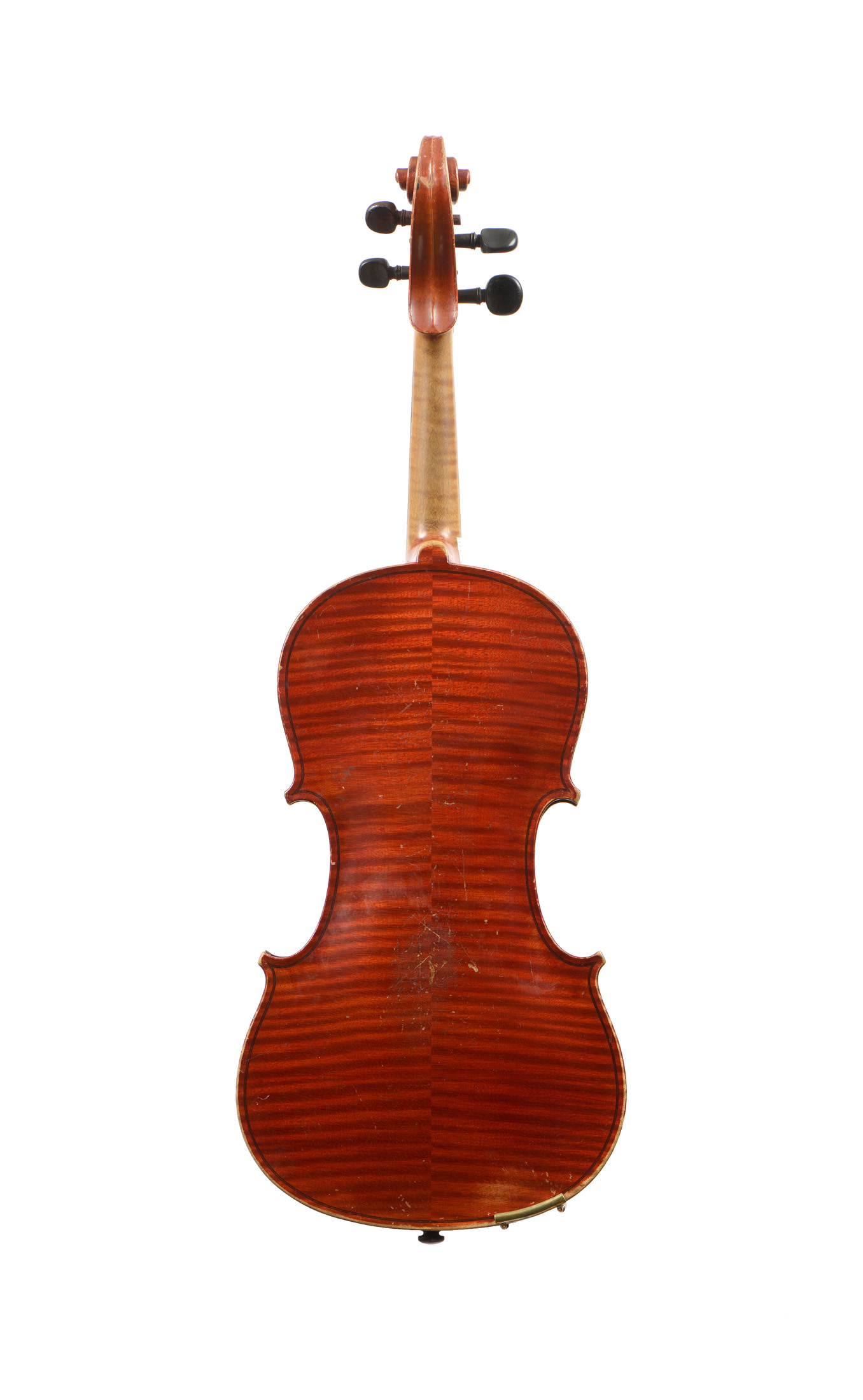 portant une étiquette "A.Stradivarius 1722". Fait au début du XXe à Mirecourt. Fond de deux pièces. Vernis brun rouge sur fond doré. Avec sa boite et trois archets.