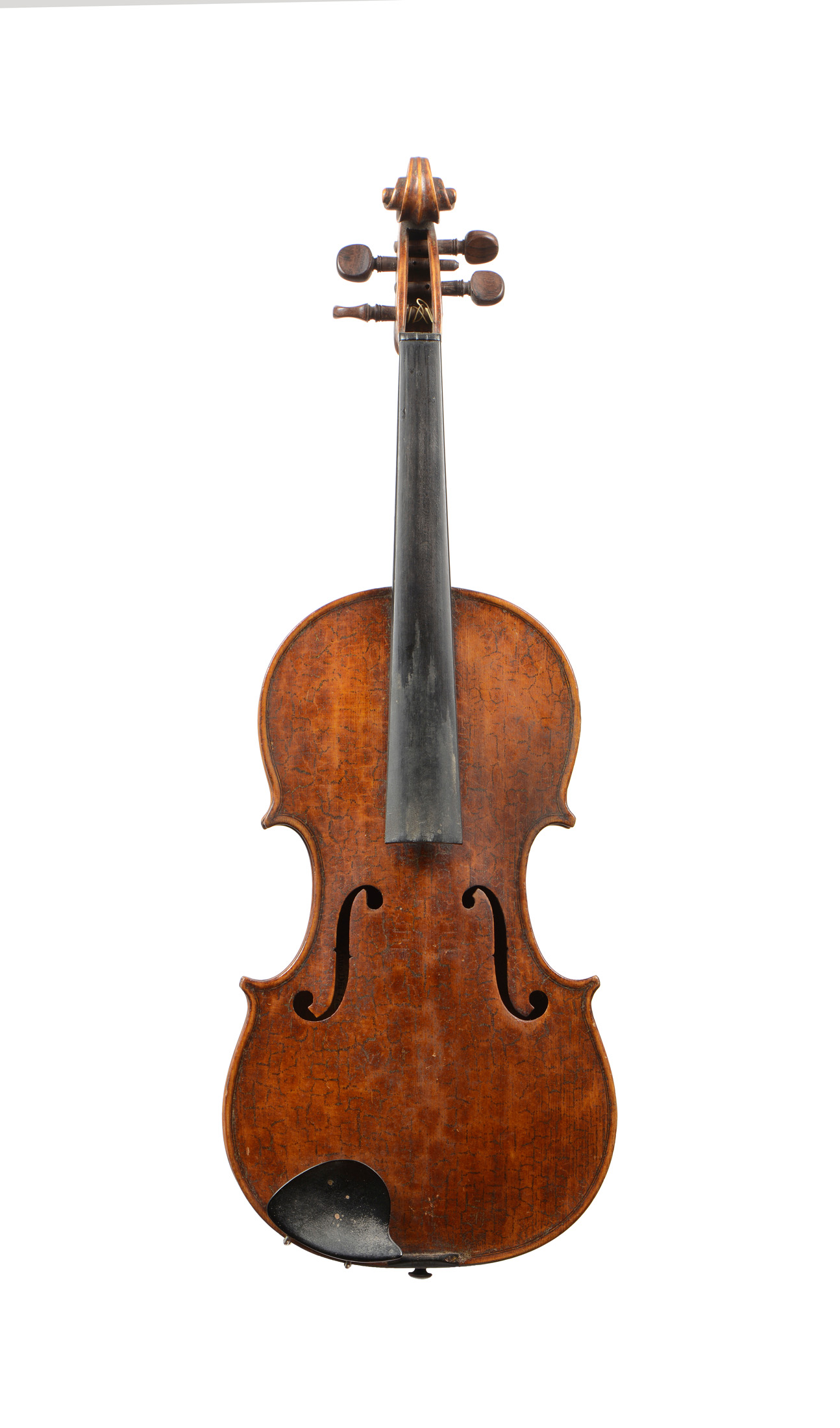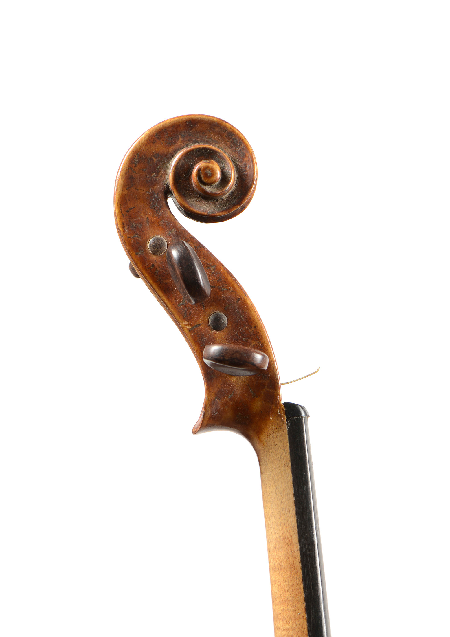dont il porte l'étiquette apocryphe Francilcus de Emilinanis. Fond d'une pièce en érable. Vernis craquelé, brun sur fond doré. 363 mm. Avec boite et archet.