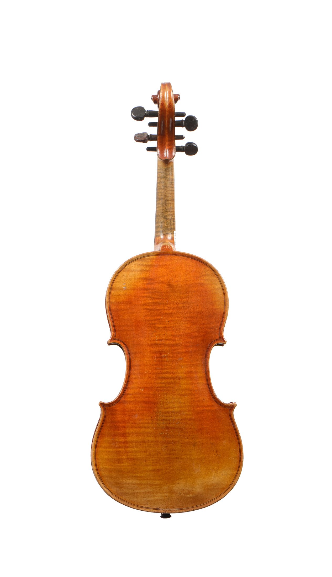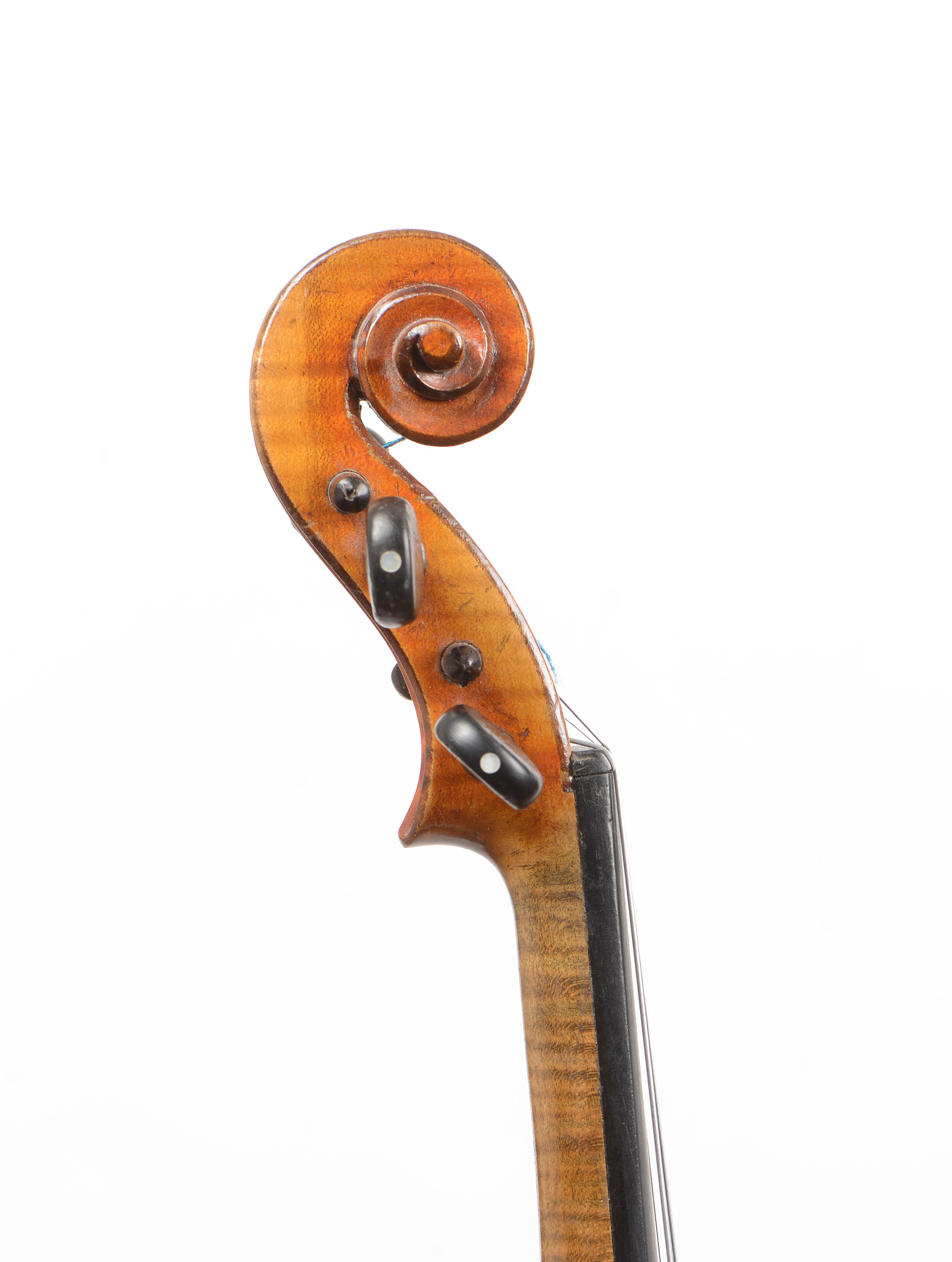 dont il porte l'étiquette JTL avec une lyre. Cassure de table. Fond d'une pièce. Vernis brun orangé sur fond doré. Avec un bel archet en pernambouc, fait à Mirecourt.