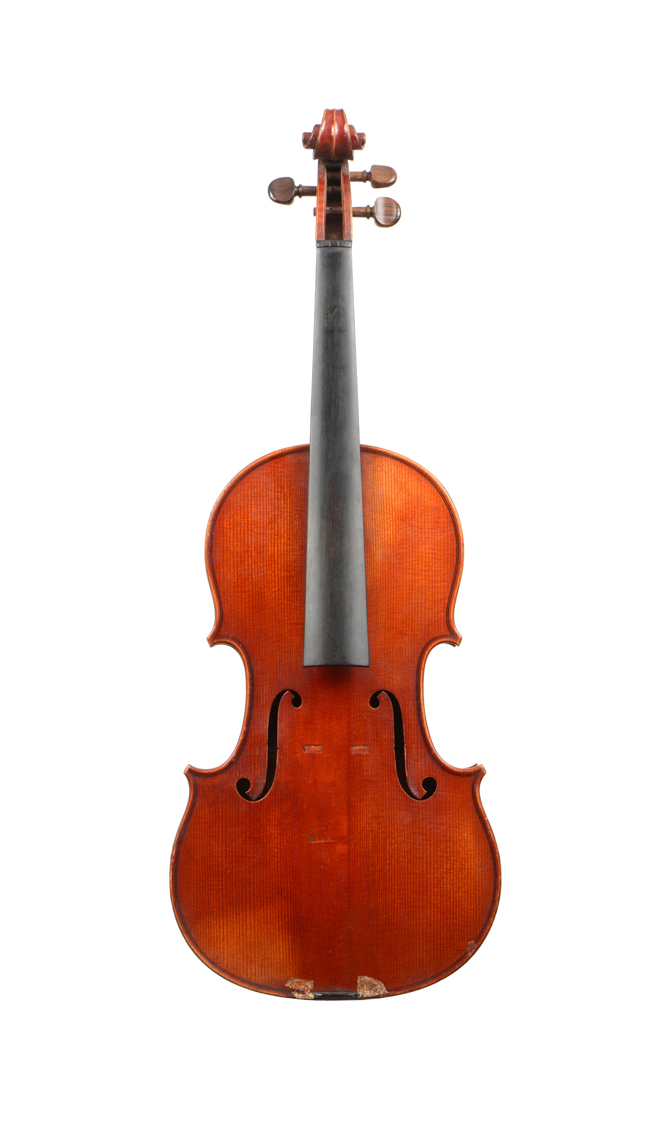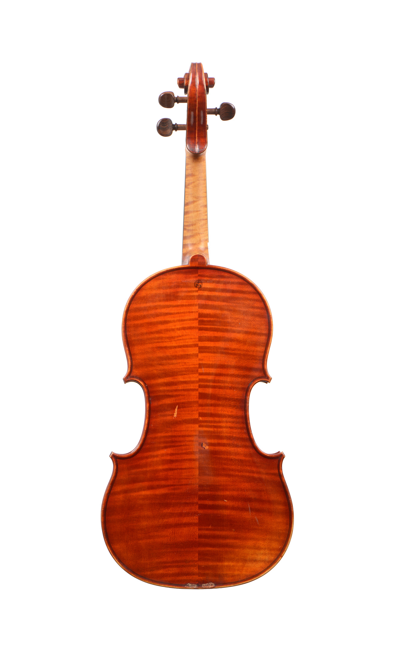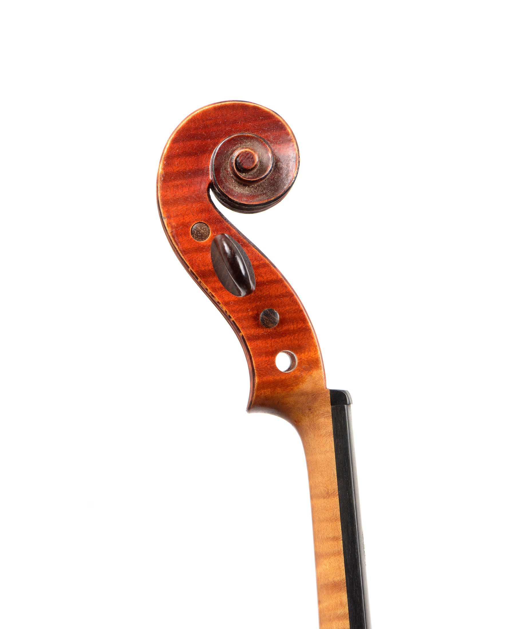 Bel Alto fait en modèle de Pierre Hel dont il Porte une étiquette, au millésime de 1907, et une marque sous le talon du manche. Fond de deux pièces. vernis brun orangé sur fond doré. 405 mm.