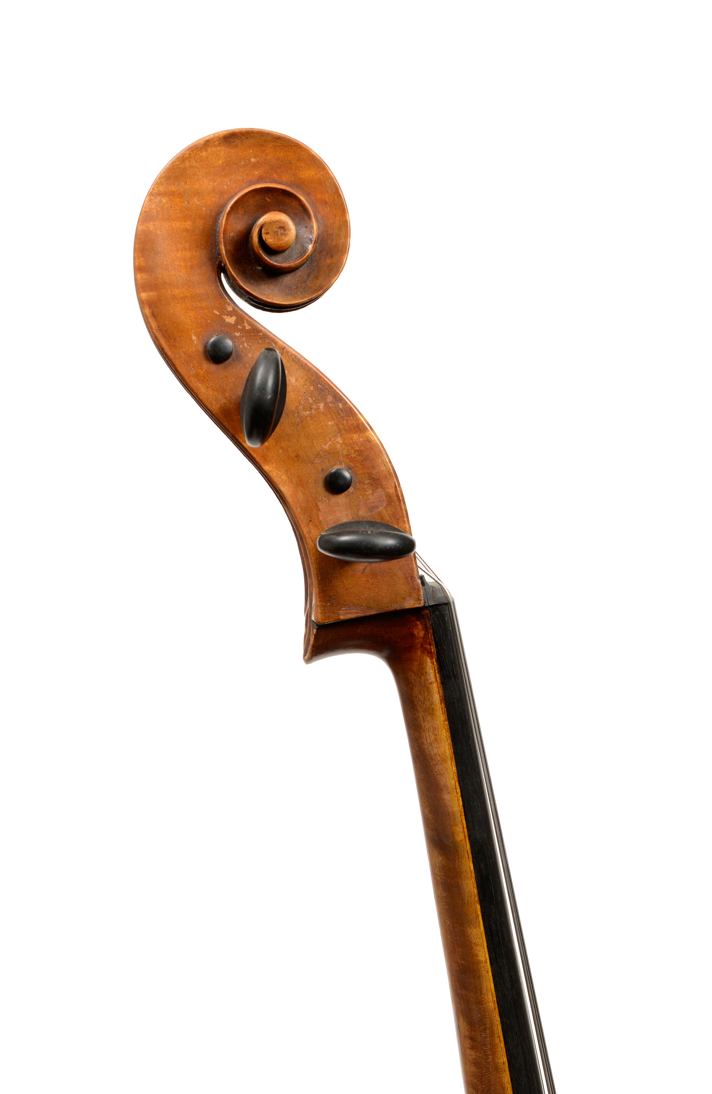 probablement fait par Louis COLLENOT dont il porte l'étiquette de Louis Collenot, daté de 1918. Fond en érable de deux pièces aux ondes pauvres. Eclisses et tête aux ondes plus marquées. Table en sapin aux pores irréguliers. 747 mm.