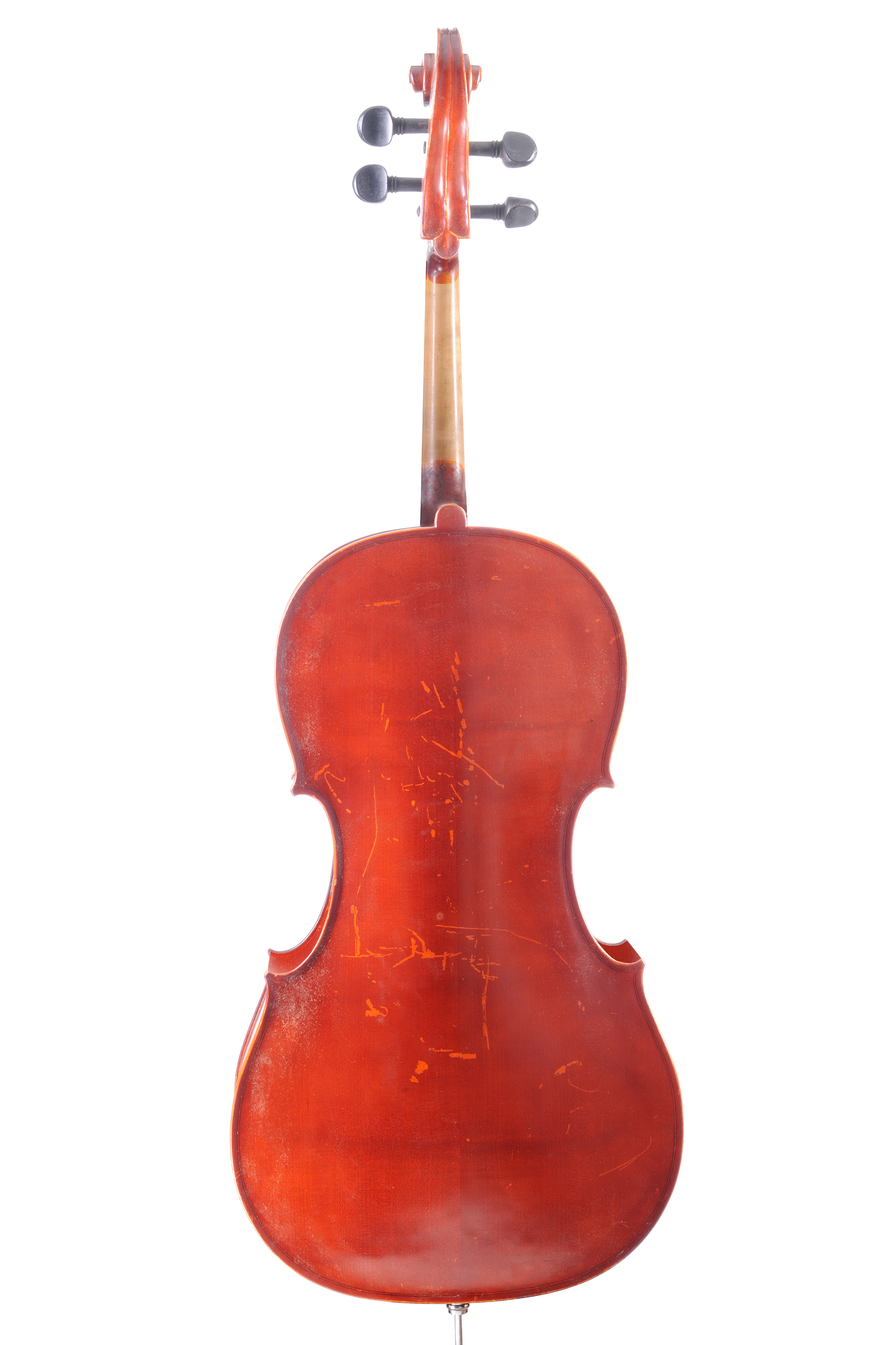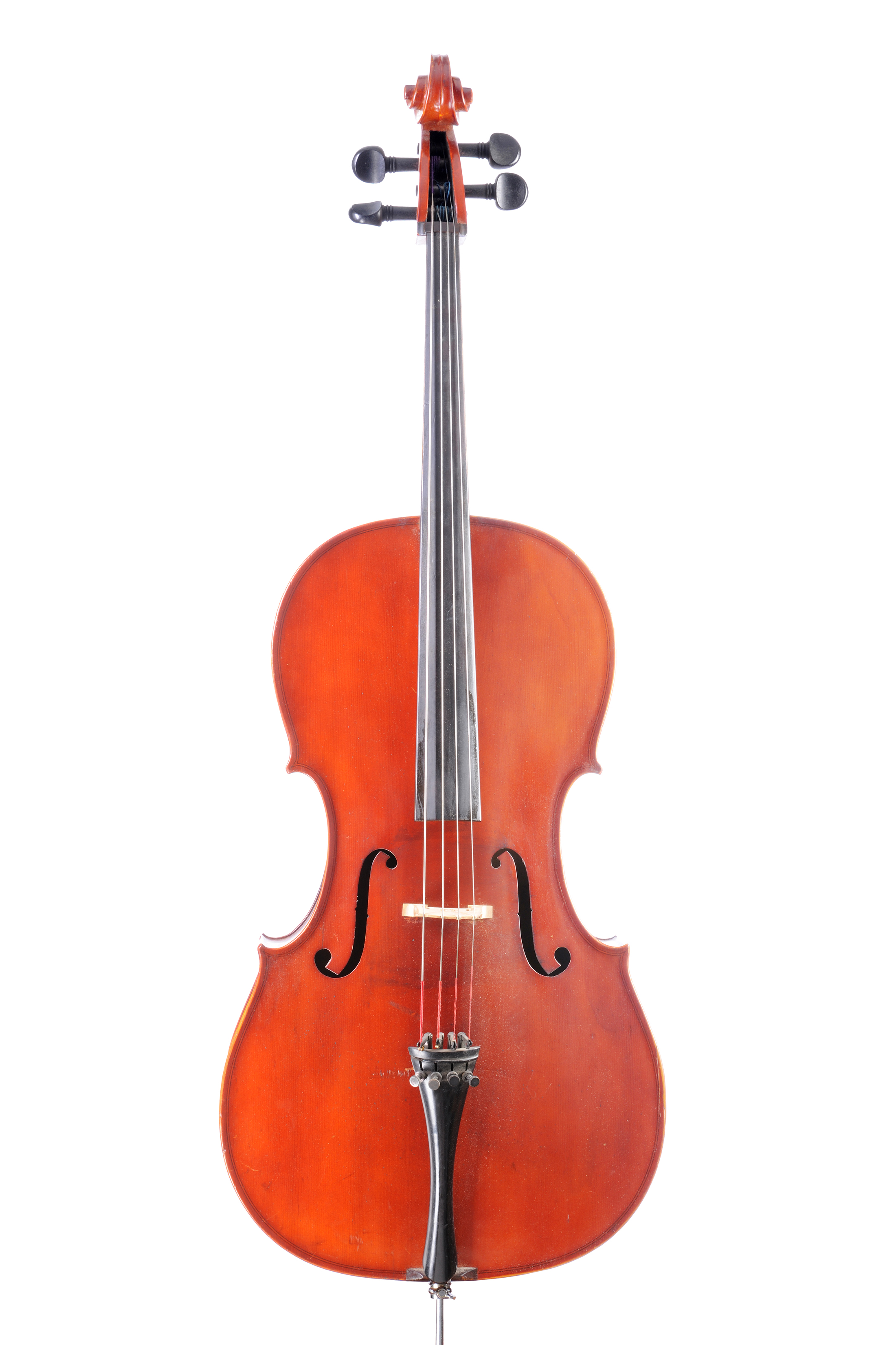 Violoncelle moderne portant une étiquette “copie de Antonio Stradivarius 1721”. L'ensemble est reverni brun-rouge. 756 mm.
