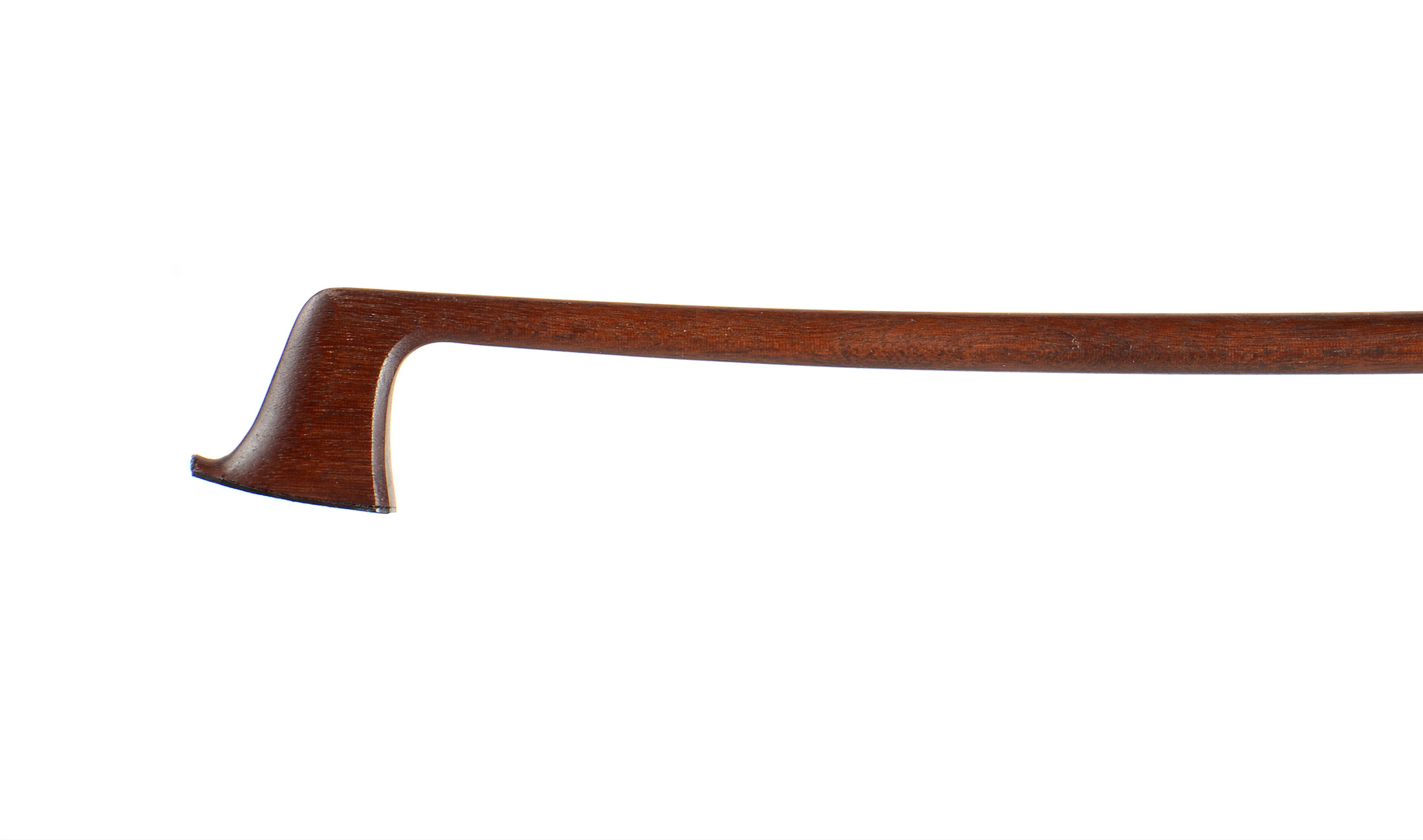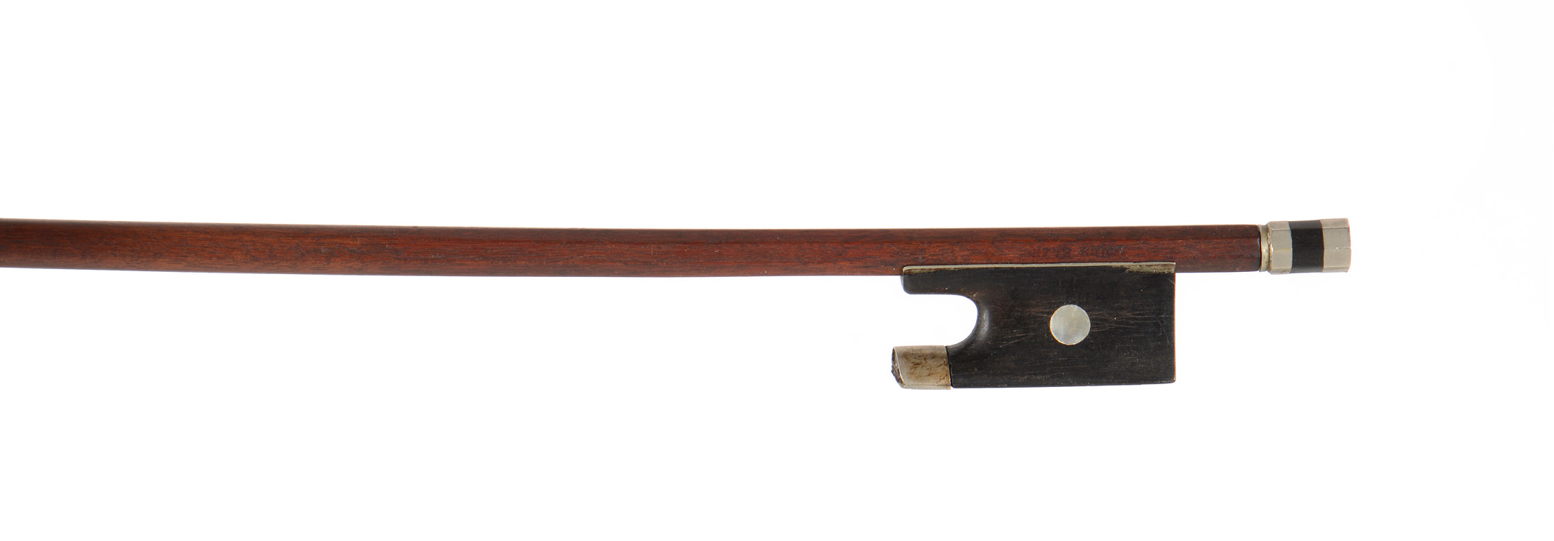 Baguette en pernambouc. Hausse ébène montée maillechort. 730 mm. 50 g sans garniture, sans plaque de tête, sans mèche.