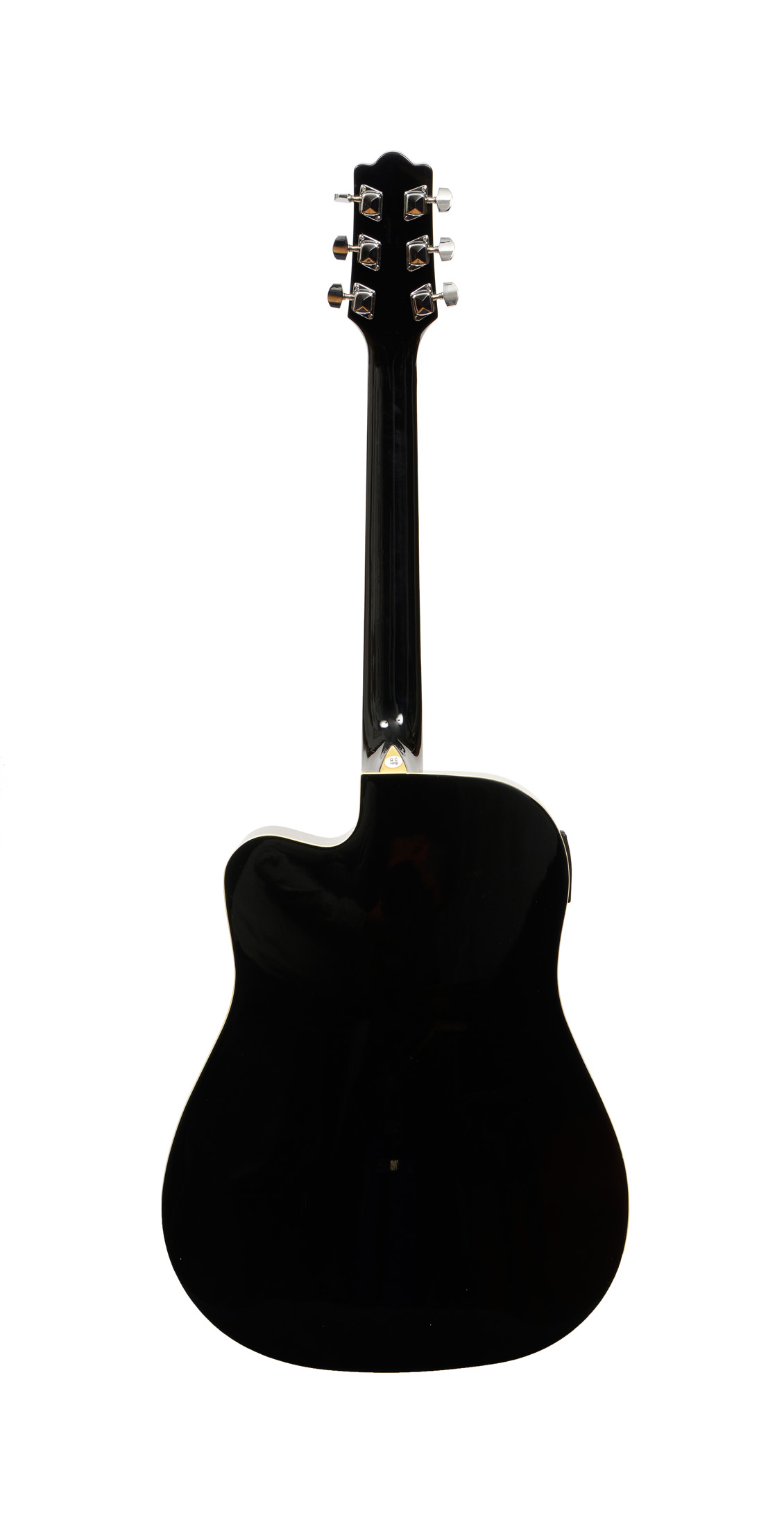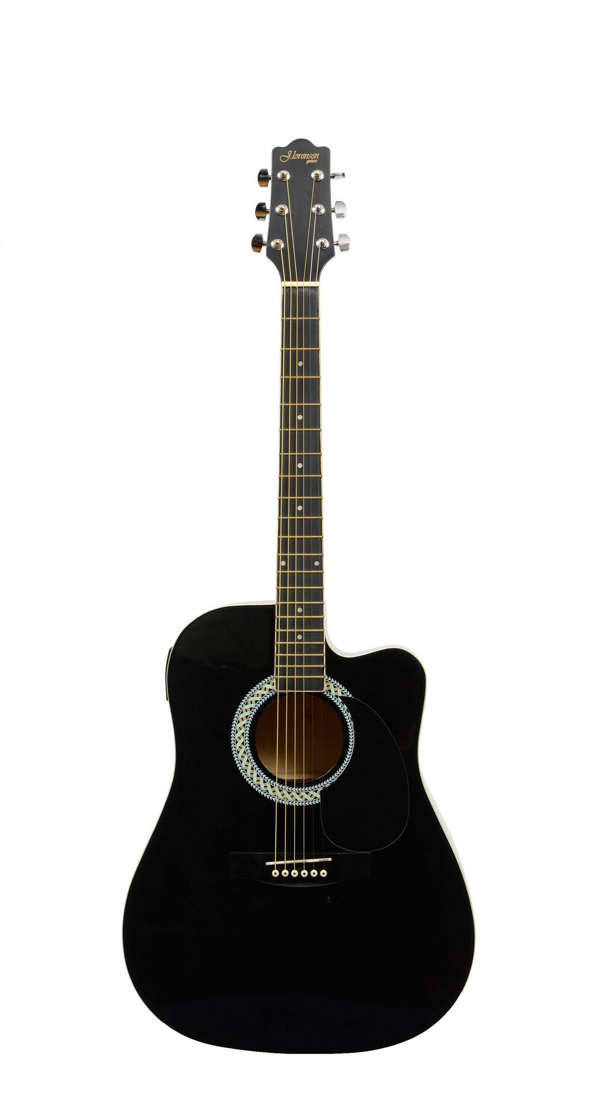 Reference :LR-100B. Une guitare folk électro-acoustique. Dreadnought noire. Pan coupé. Etat: Neuf.