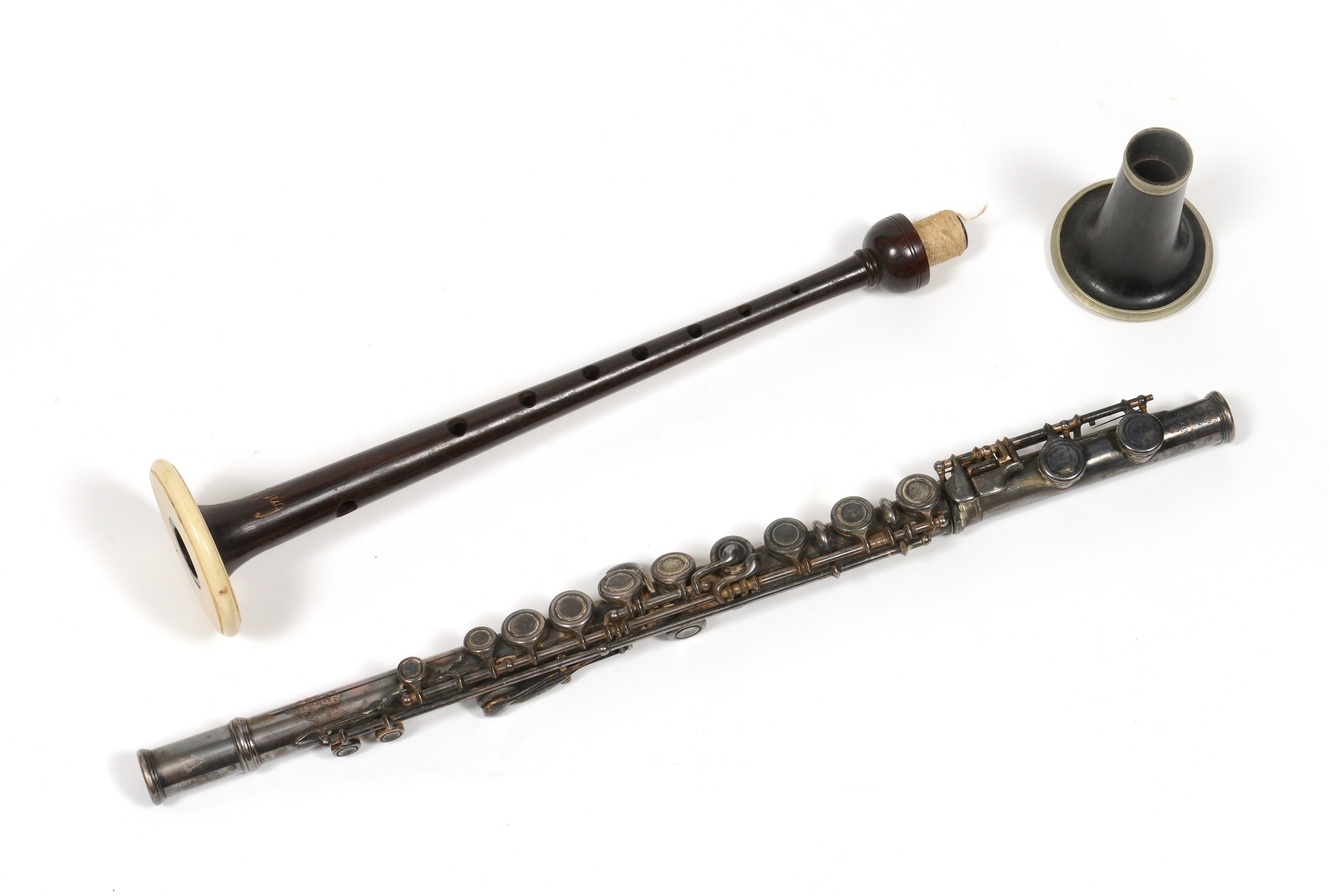 Partie de Flute traversière, Pavillon de clarinette, Partie de flute en palissandre.