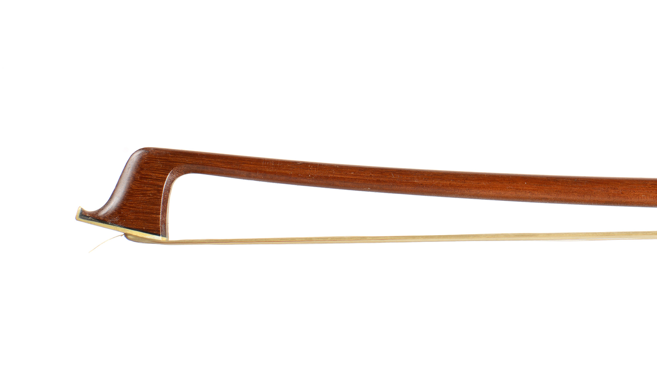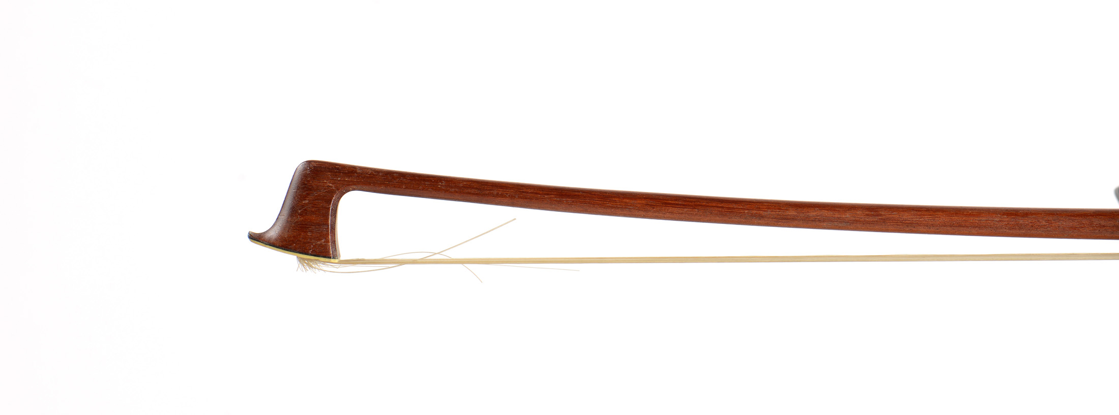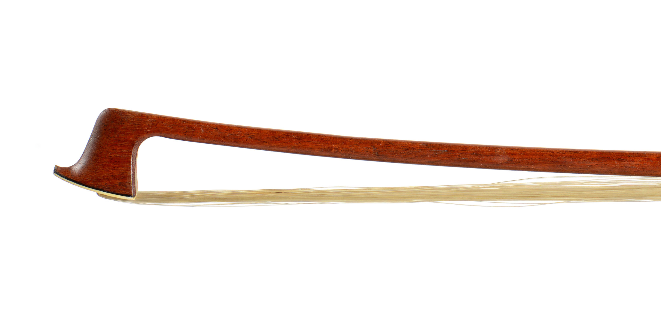 Trois archets de violon ARY FRANCE: Un archet de violon 3/4, en bois de pernambouc, dont il porte la marque au fer. Un archet de violon 1/2, en bois de pernambouc, dont il porte la marque au fer. Un archet d'alto, Hausse ébène montée maillechort avec grain cerclé.