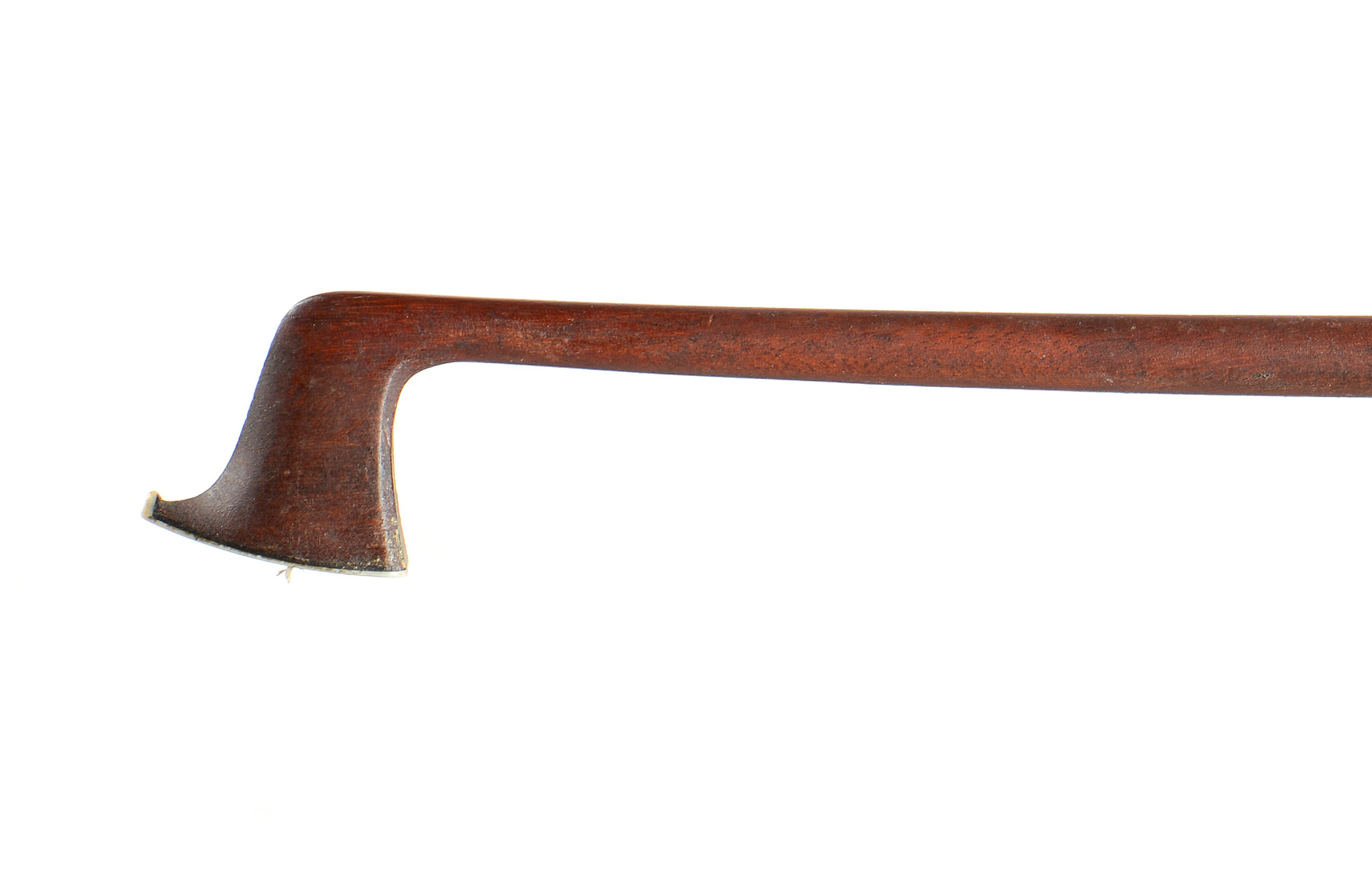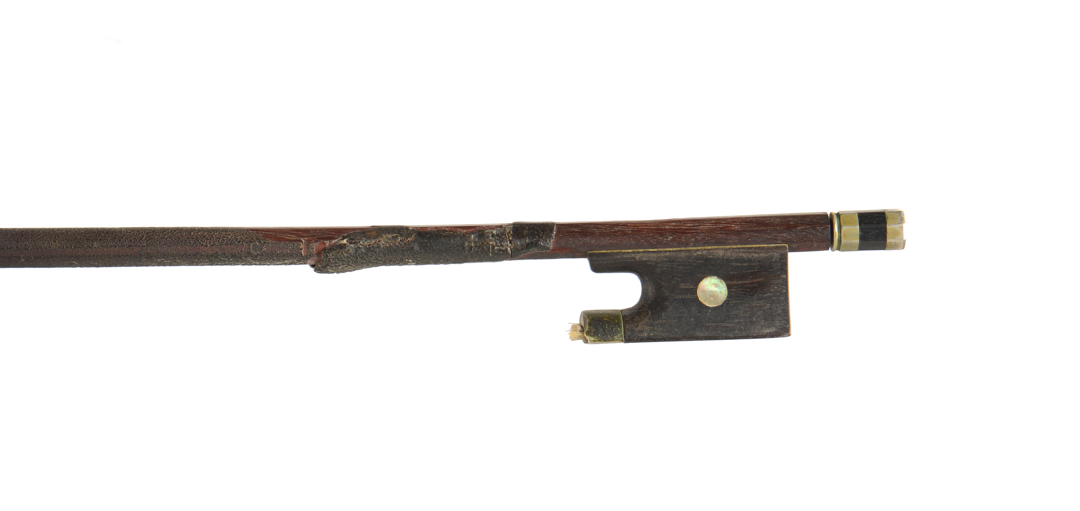 baguette en bois de pernambouc. Hausse ébène montée maillechort. 49,5 g. 725 mm. Avec enture. En l'état.