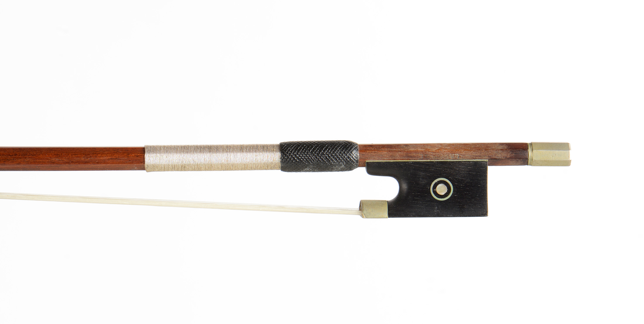 Fait à Mirecourt. Il porte la marque au fer de LAFORGE. Baguette en pernambouc. Hausse ébène montée maillechort. 57,3 g. 730 mm.