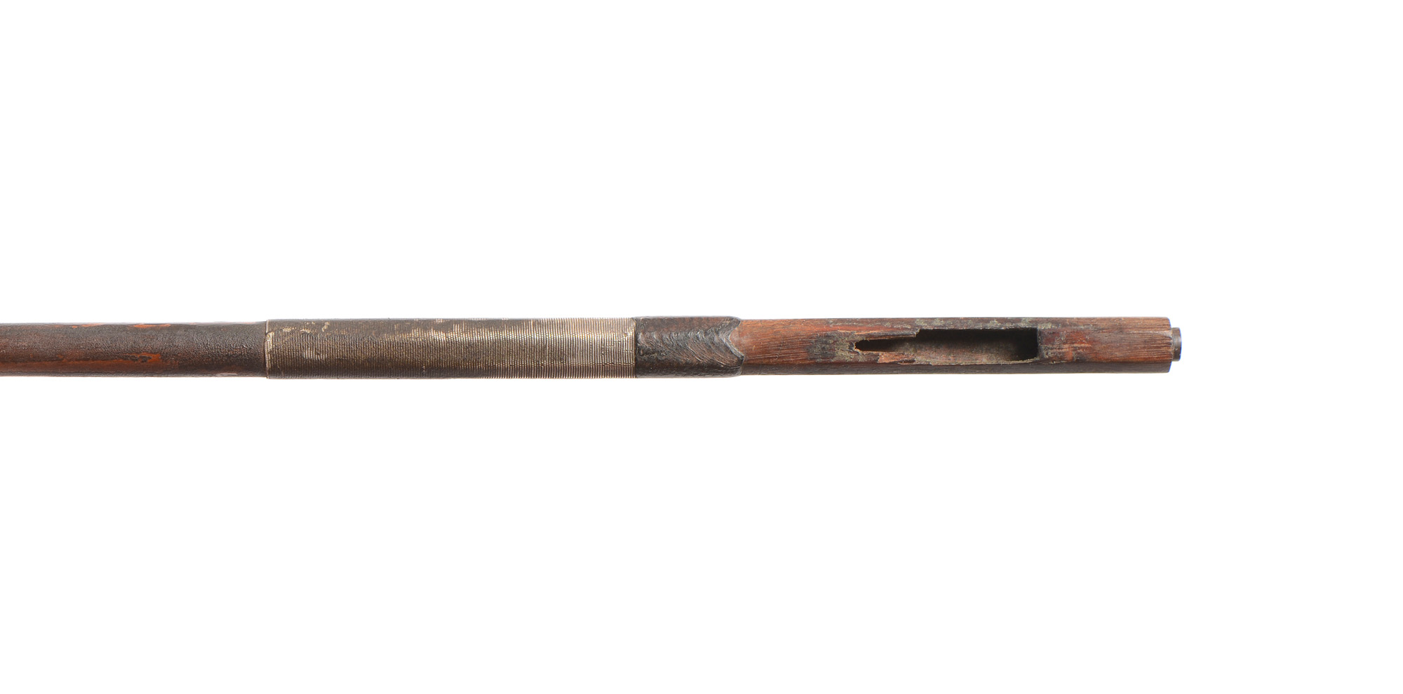 Baguette en beau bois de pernambouc. A restaurer au pan, sous la hausse. 691 mm. 39 g.