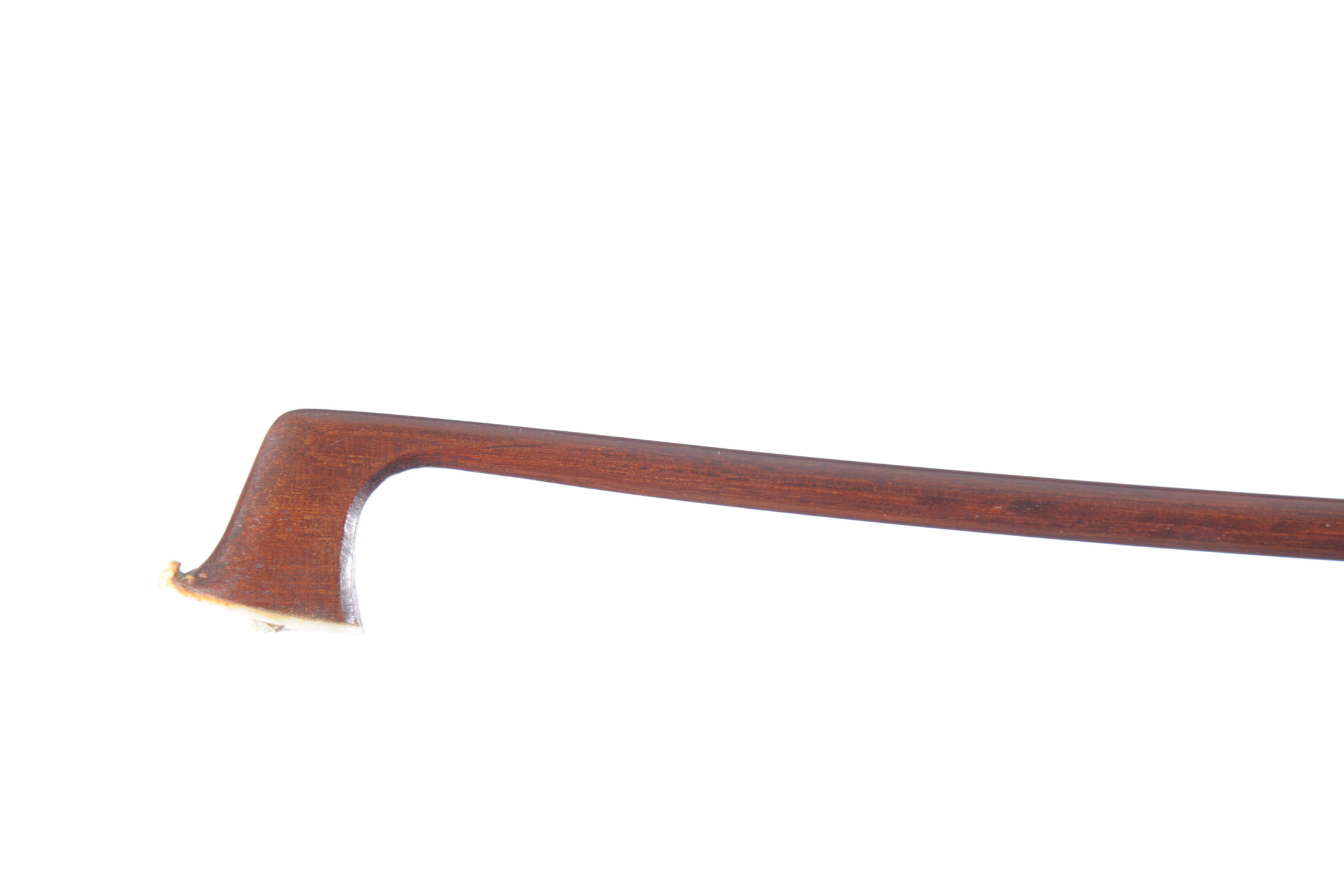 probablement fait par Pierre Cuniot vers 1880. Baguette en bois de pernambouc. Hausse ébène montée maillechort. Bouton 2 virolles en maillechort. 725 mm. 51 g sans mèche, ni garniture.