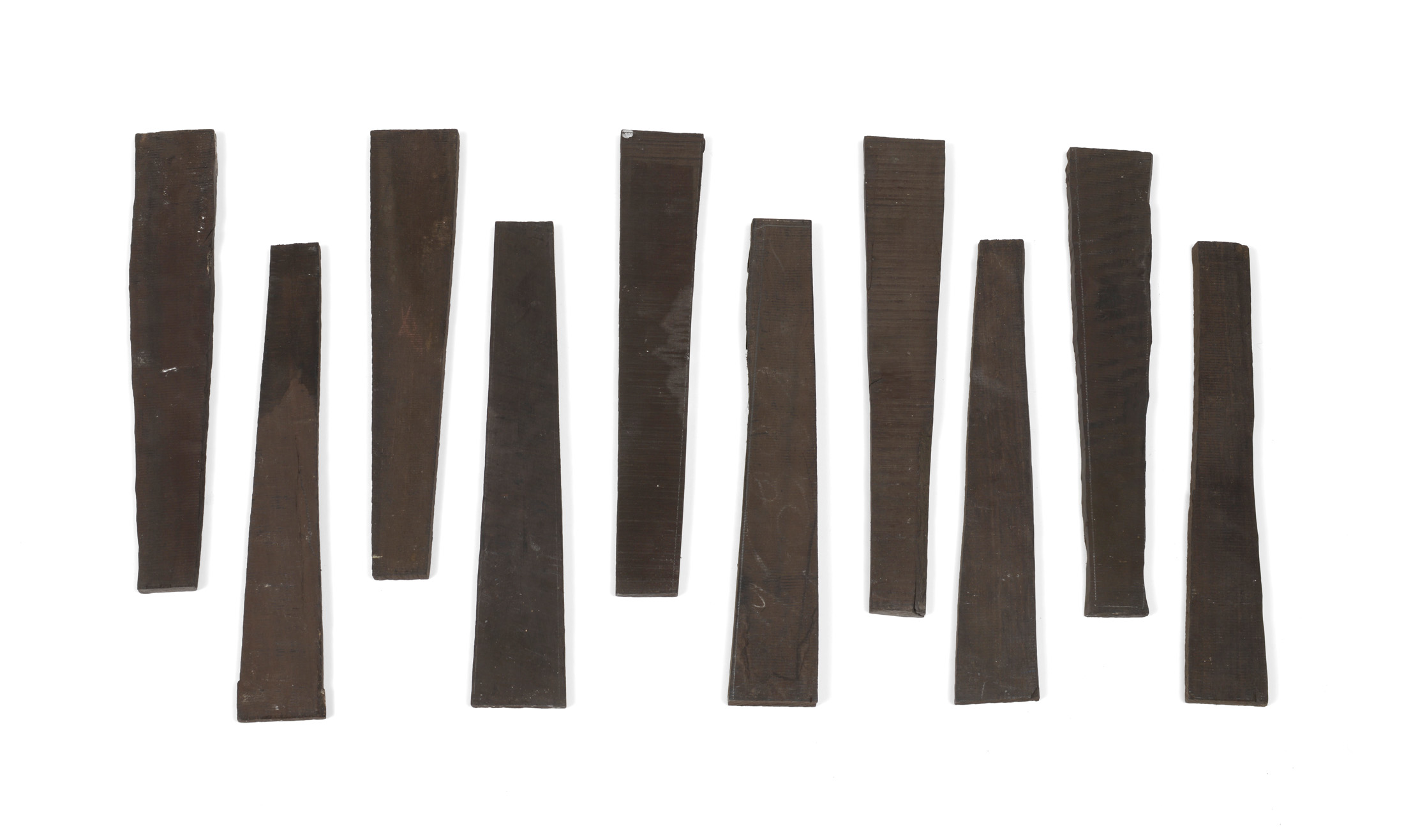 Lot de 10 touches en ébène Brut. Bois ancien. En l'état.