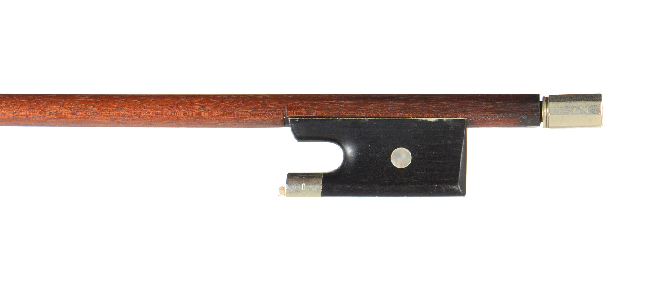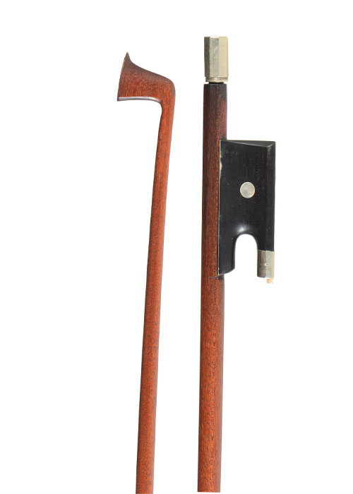 fait à Mirecourt dans les ateliers JTL. Hausse modèle Vuillaume. Baguette en pernambouc. La hausse est en ébène montée maillechort. 727 mm. 49 g sans mèche ni garniture.
