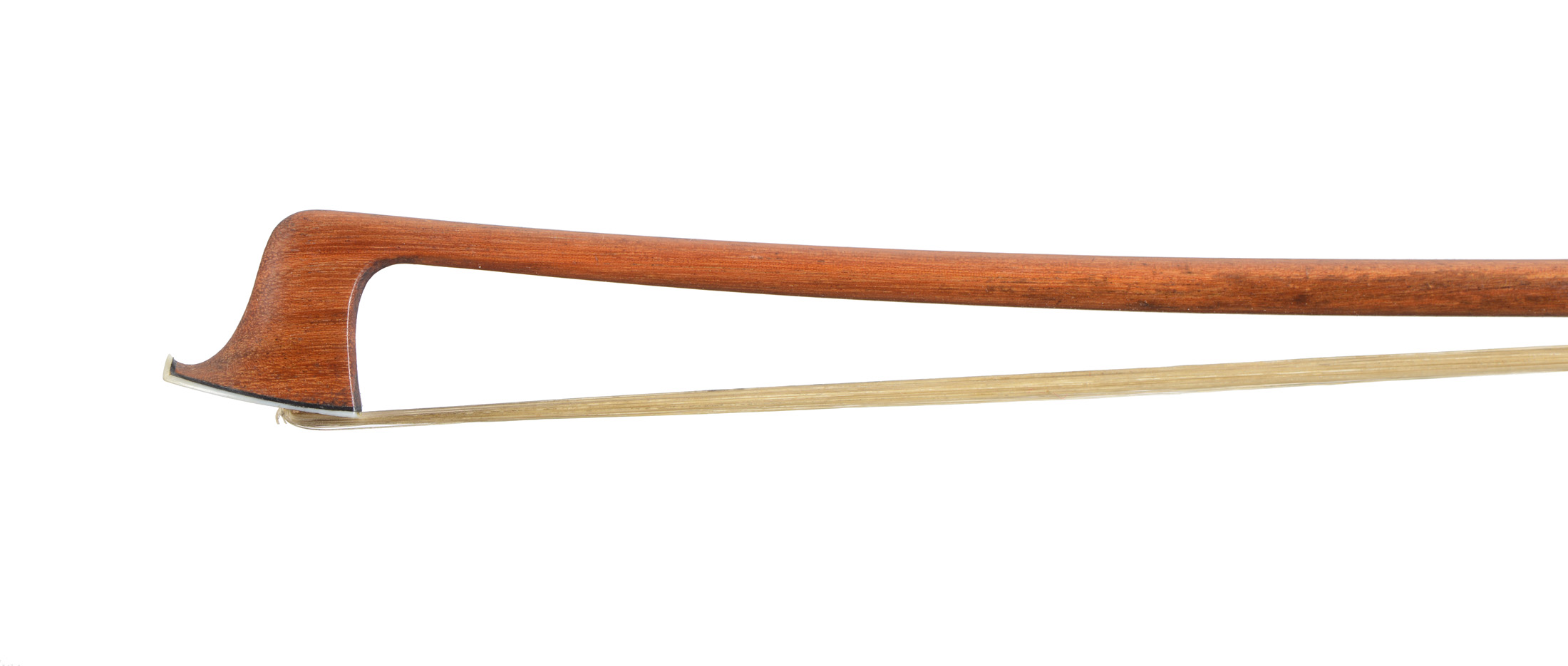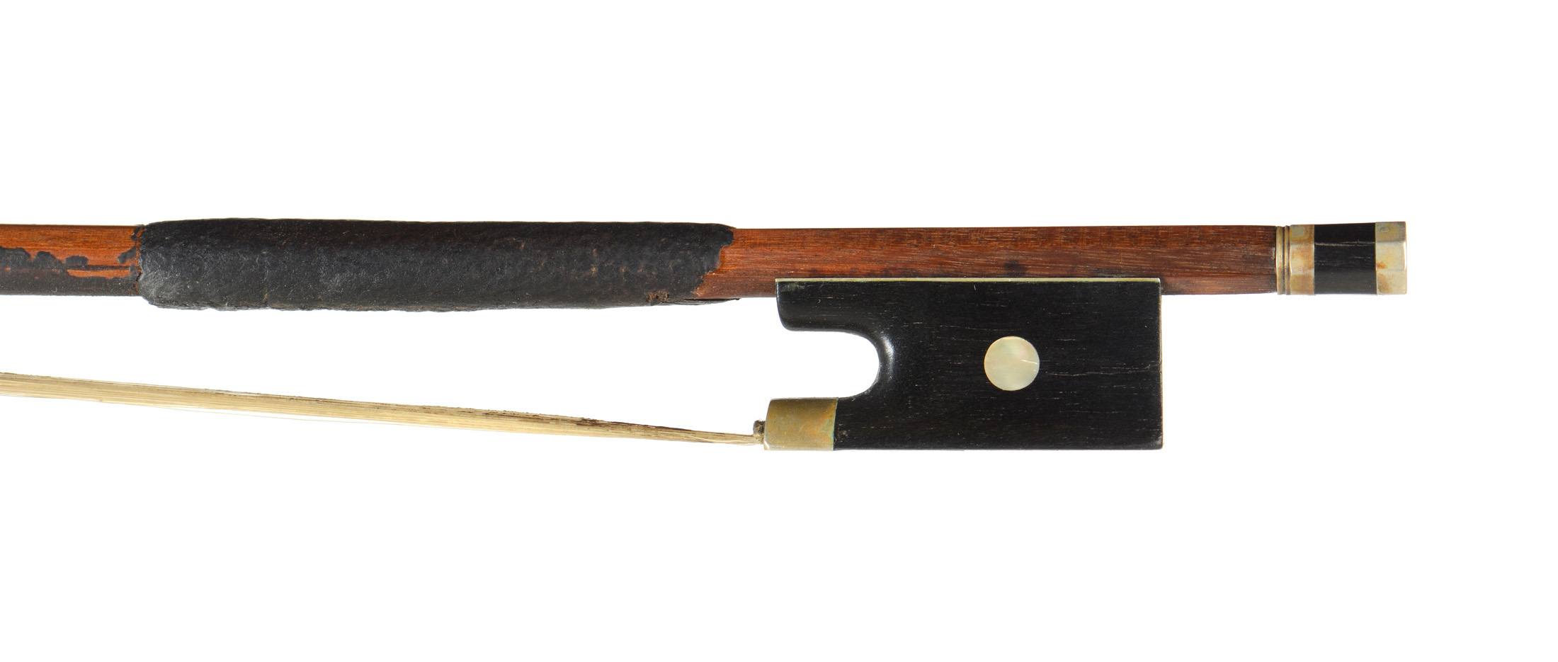 Portant une marque apocryphe de "J. Voirin" à Paris. Fait au début du XXè. Baguette ronde en pernambouc. La hausse est en ébène montée Maillechort. Léger fel à la hausse. 727 mm. 47 g presque sans mèche, ni garniture.