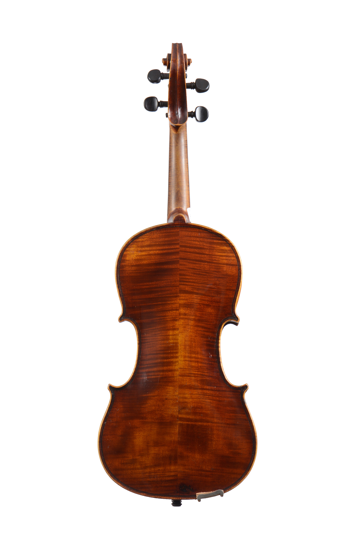 Portant une étiquette Stradivarius 1623. Fond de deux pièces en bel érable, verni brun doré. 359mm. Bon état général