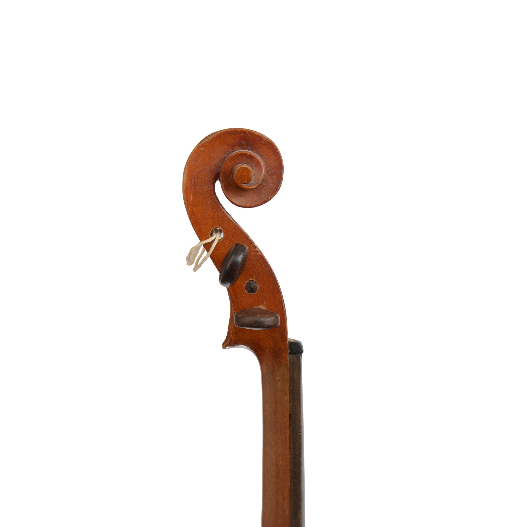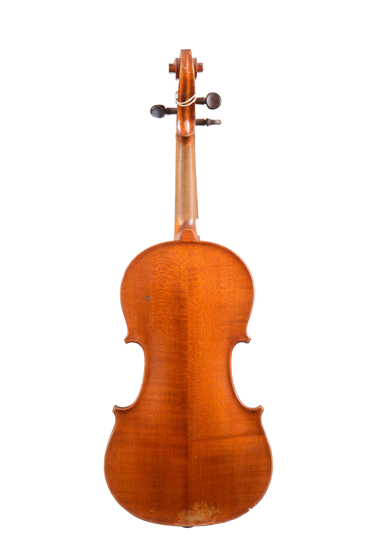 French Violin Medio Fino. Labelled "Copie de Stradivarius 1721..." Good condition. Two bows.