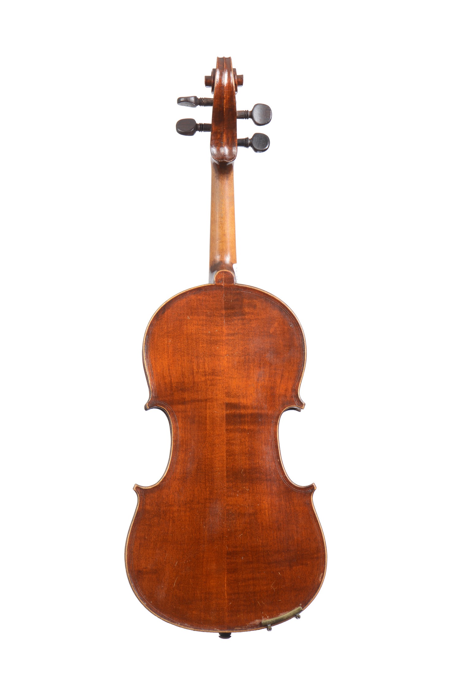 portant une étiquette apocryphe Emile Laurent. Fond de deux pièces. Vernis brun doré. Bon état général. Avec boite et archet.