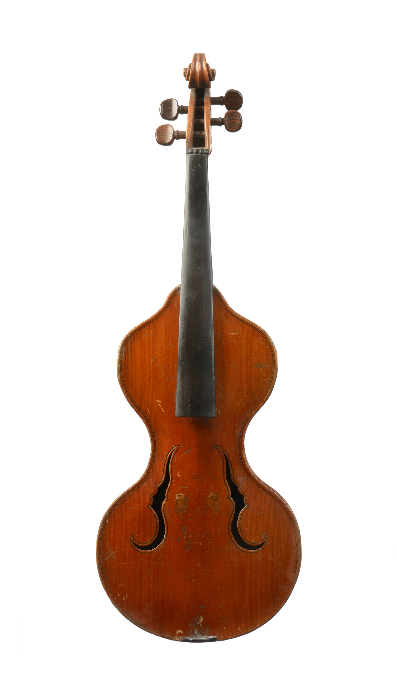 Violon d'europe de l'est sur un modèle "GUSETTO", école de Prague. Sans coin. Fond de deux pièces en bel érable. Diverses cassures, et usures à la table. Tête restaurée du même bois. 357 mm.