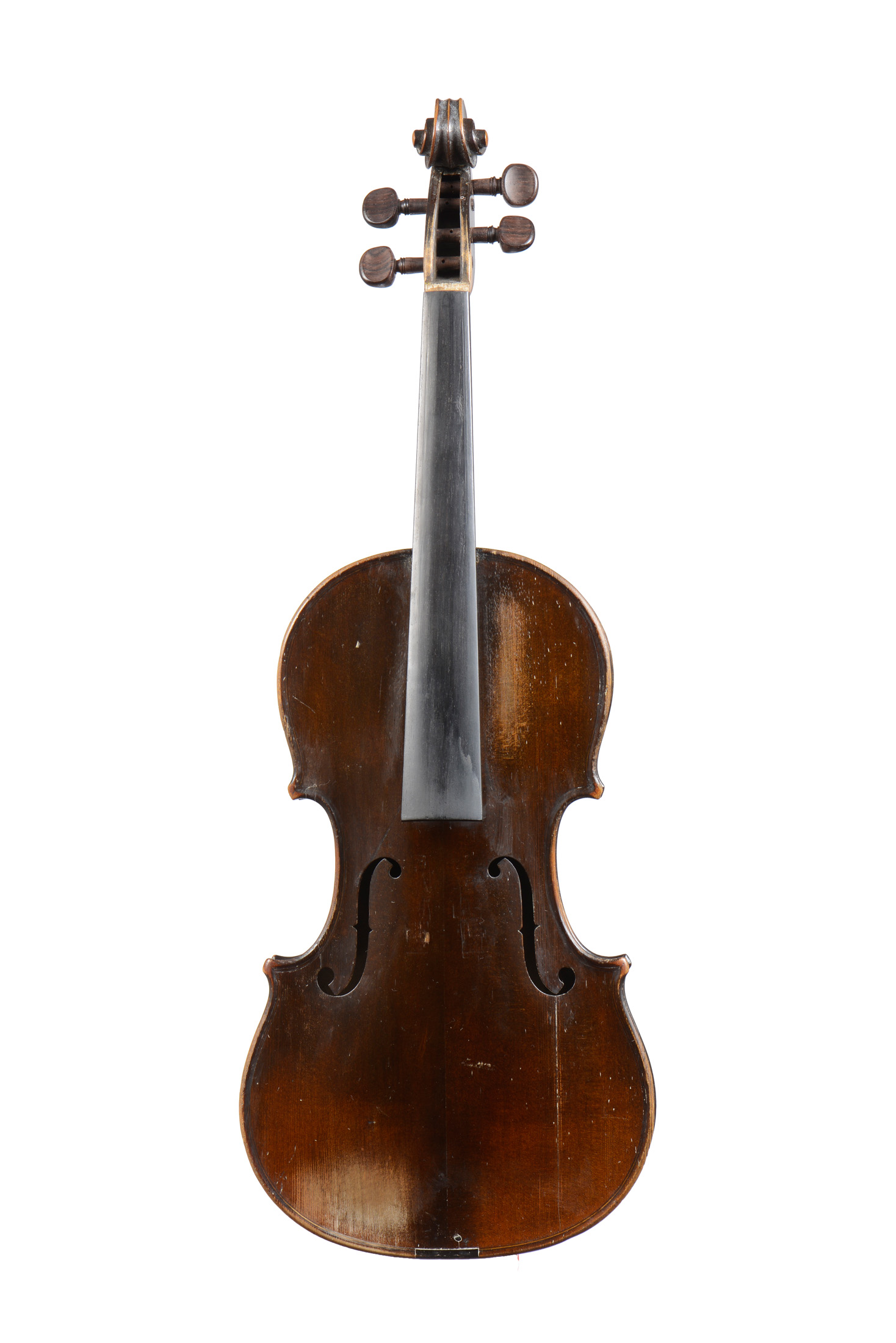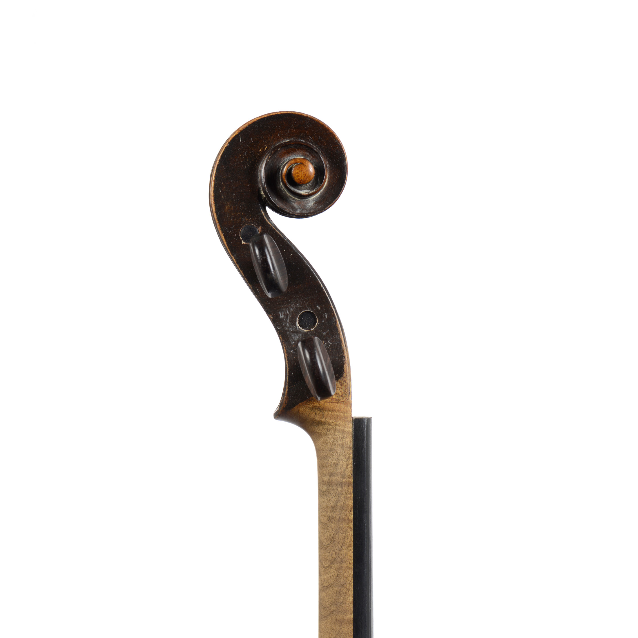 Fait au début du XIXe.Dont il porte la marque au fer sous le talon du manche Marchal à Paris ainsi qu'au fond à l'intérieur. Fond de deux pièces en érable. Table de deux pièces en épicéa aux pores fins.Vernis brun foncé sur fond doré. Bon état : une cassure et diverses usures à la table. Joint du fond à revoir. 355 mm.