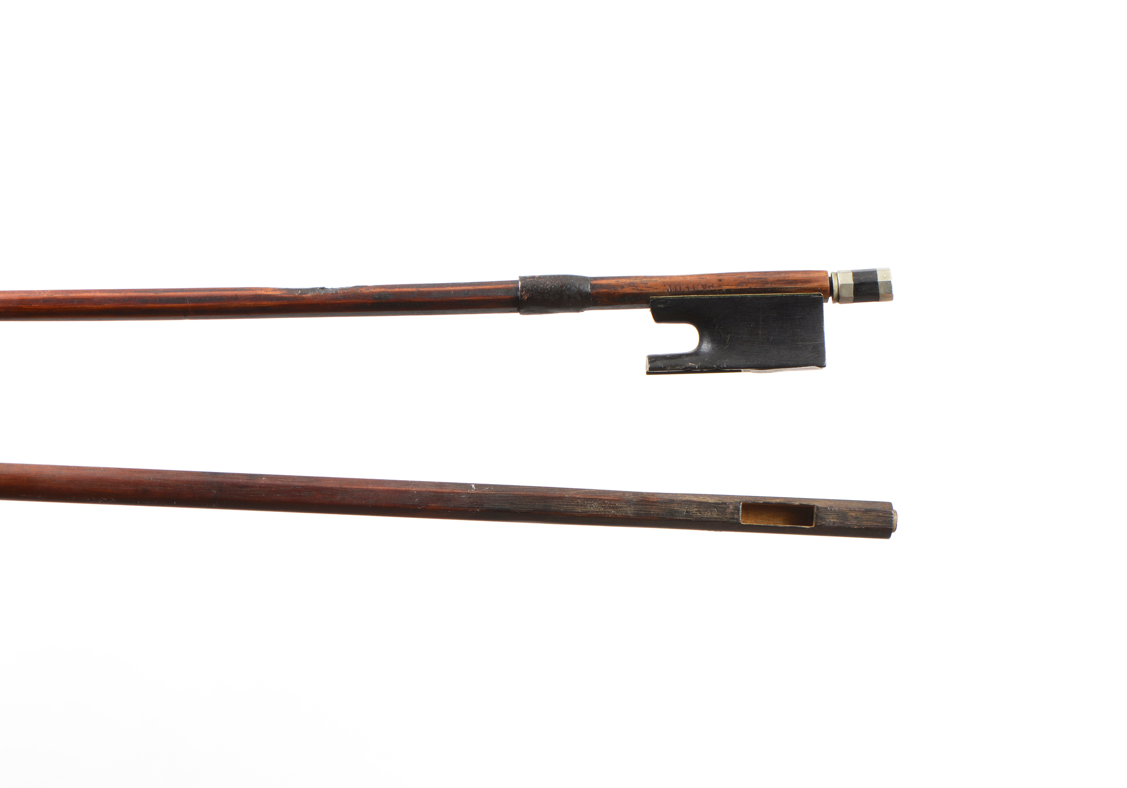 2 Bows: One violin bow apocryph stamped Pageot. One cello bow apocryph stamped Chanot et Chardon.