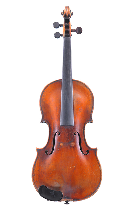 Violon français fait à Mirecourt vers 1900 en copie de Joseph Guarnerius. Fond de deux pièces. Vernis brun doré. 360 mm. Avec étui et archet