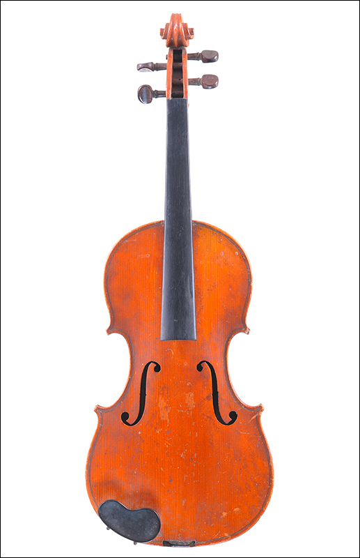 Violon portant la marque au fer de Breton sous le talon du manche et l'étiquette Breton breveté de SMG, Madame la duchesse d'Angoulême, Mirecourt 1831. Vernis brun doré. Manche cassé recollé. 358 mm. Avec étui et archet