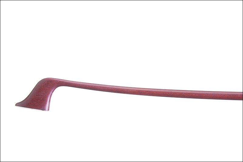 Archet de violoncelle en beau bois de pernambouc portant une marque de Tourte. Hausse ébène montée argent et bouton d'un autre auteur. 694 mm.