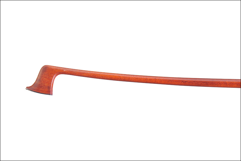 Archet de violon portant la marque au fer de Marc Laberte. Baguette en pernambouc. Hausse ébène à talon rond montée maillechort. 728 mm, 50 g sans mèche ni garniture ni plaque de tête.