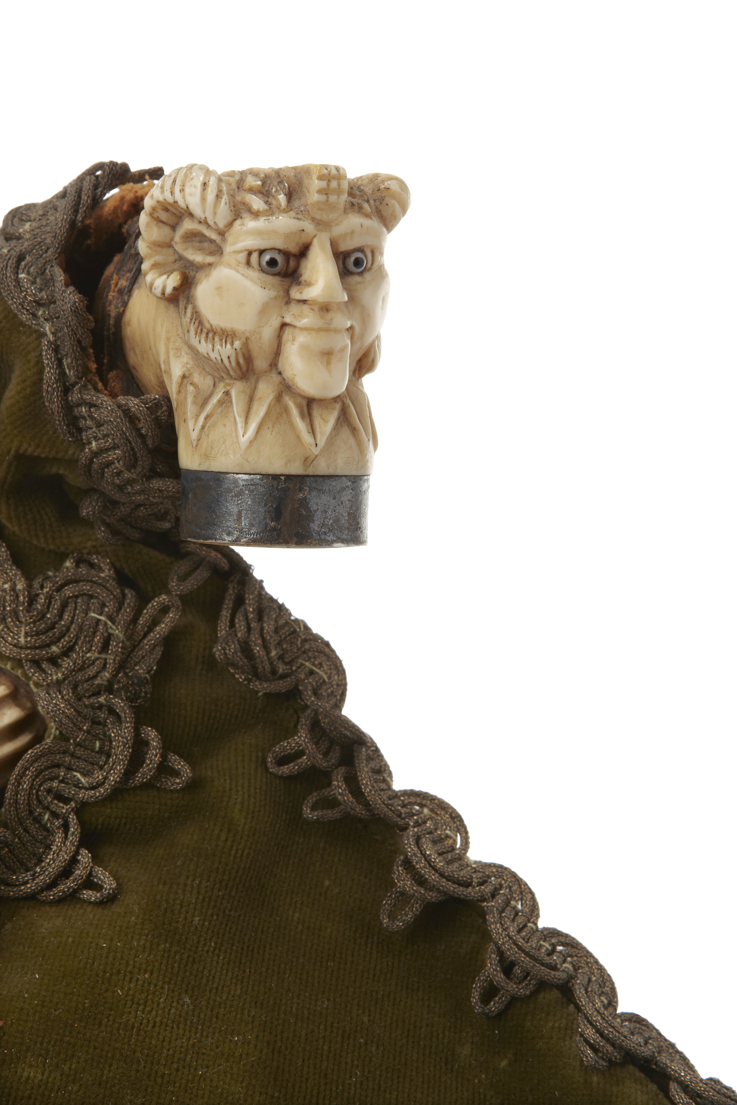 Sac de musette sourdeline possédant son bouffoir et la tête sculptée en ivoire