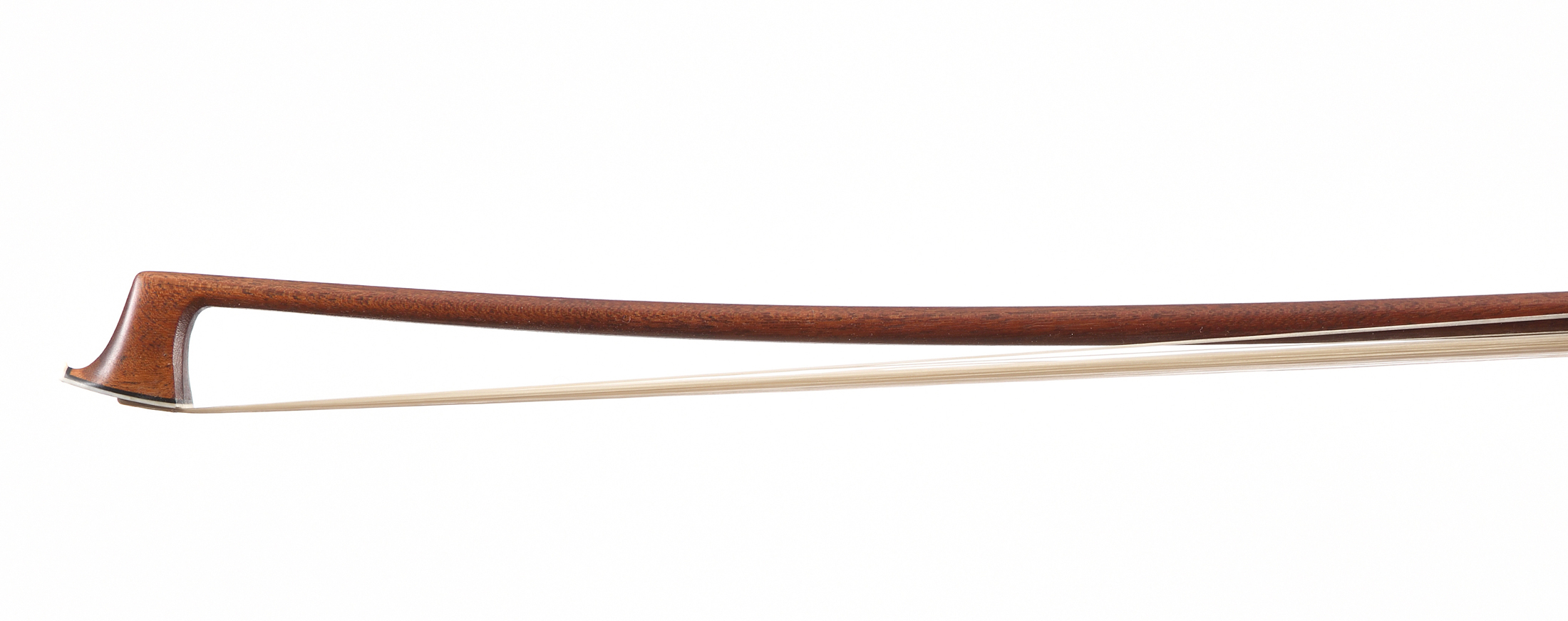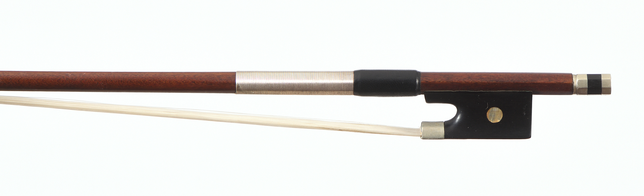 Baguette dans le style de N.MALINE avec Hausse et bouton postérieurs. Baguette ronde en bois de pernambouc. Hausse ébène montée maillechort. 732 mm. Avec certificat de Raffin.