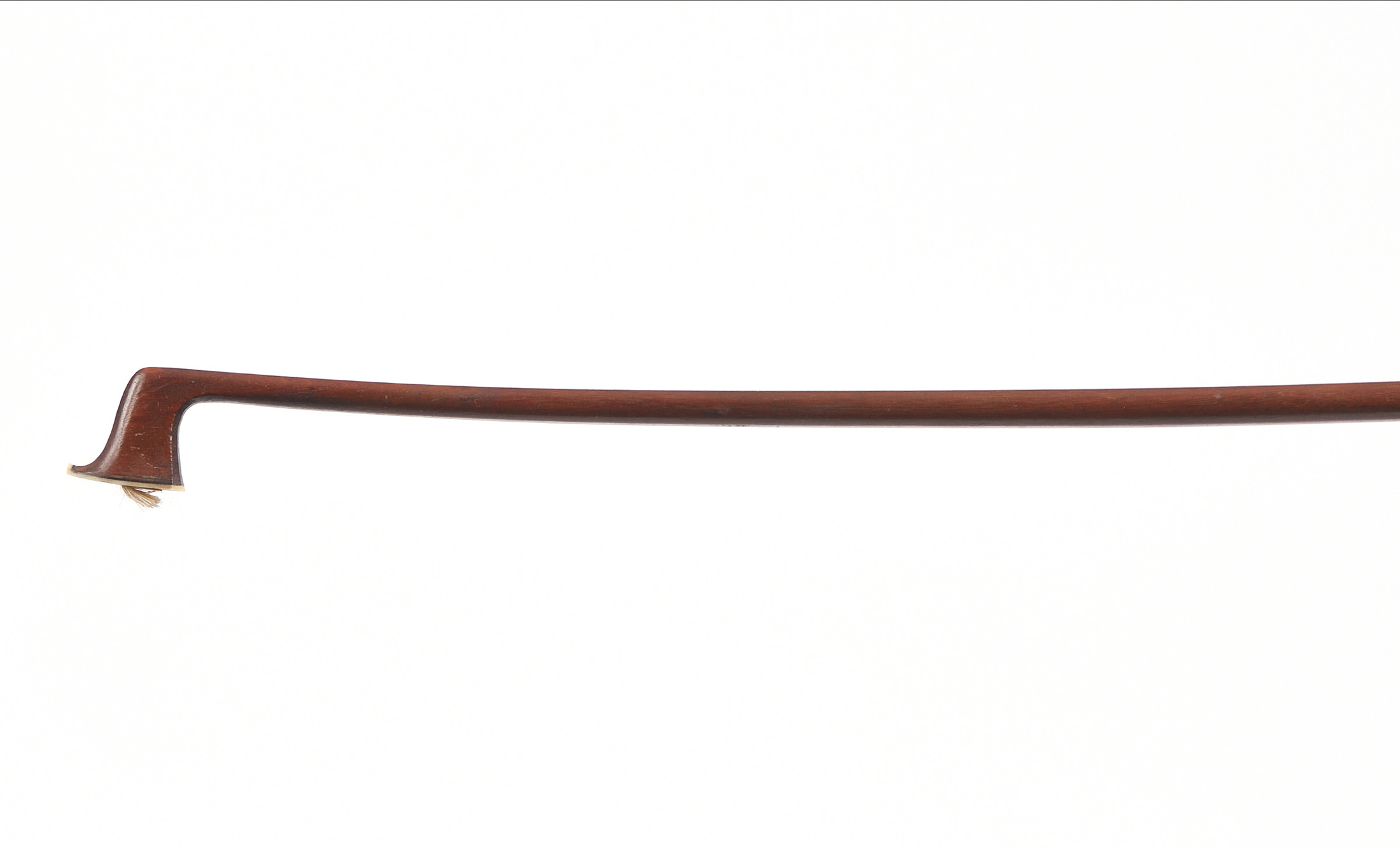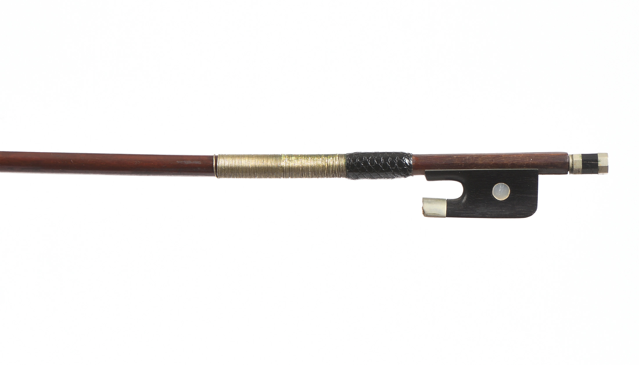 fait dans le style de Prosper Colas. Baguette ronde en bois de pernambouc. 727 mm. Une cassure au pan. Hausse ébène montée maillechort. 49,2 g sans mèche, garniture argent sur soie.
