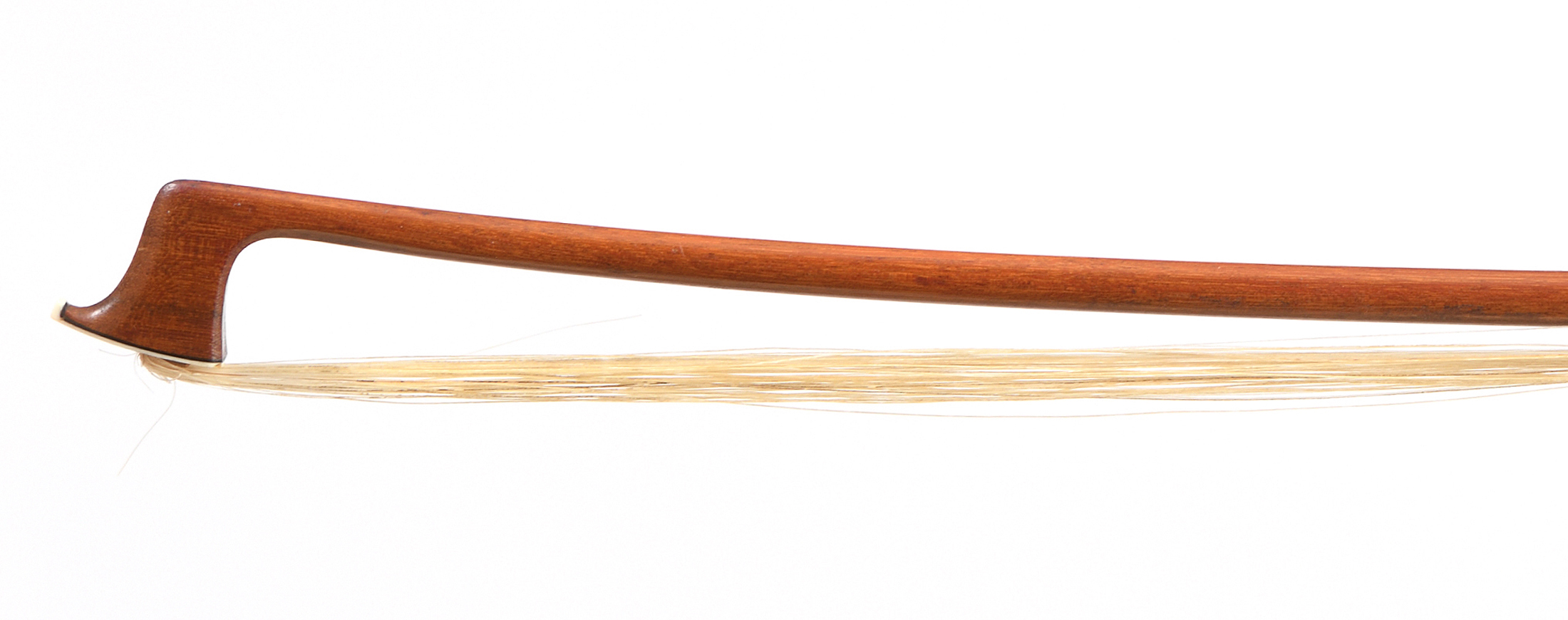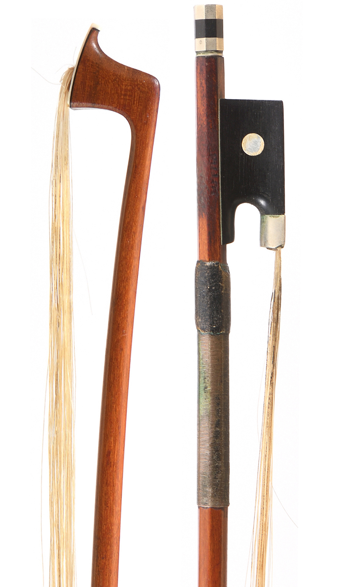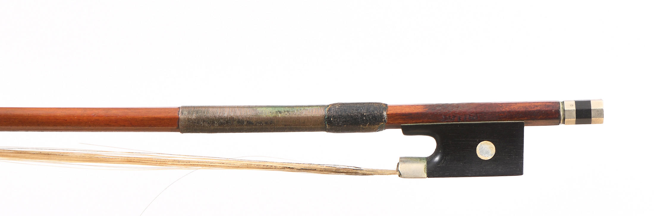 dont il porte une marque au fer LUPOT. Belle baguette ronde en bois de pernambouc. Hausse ébène montée maillechort. 50,5 g presque sans mèche. 728 mm.