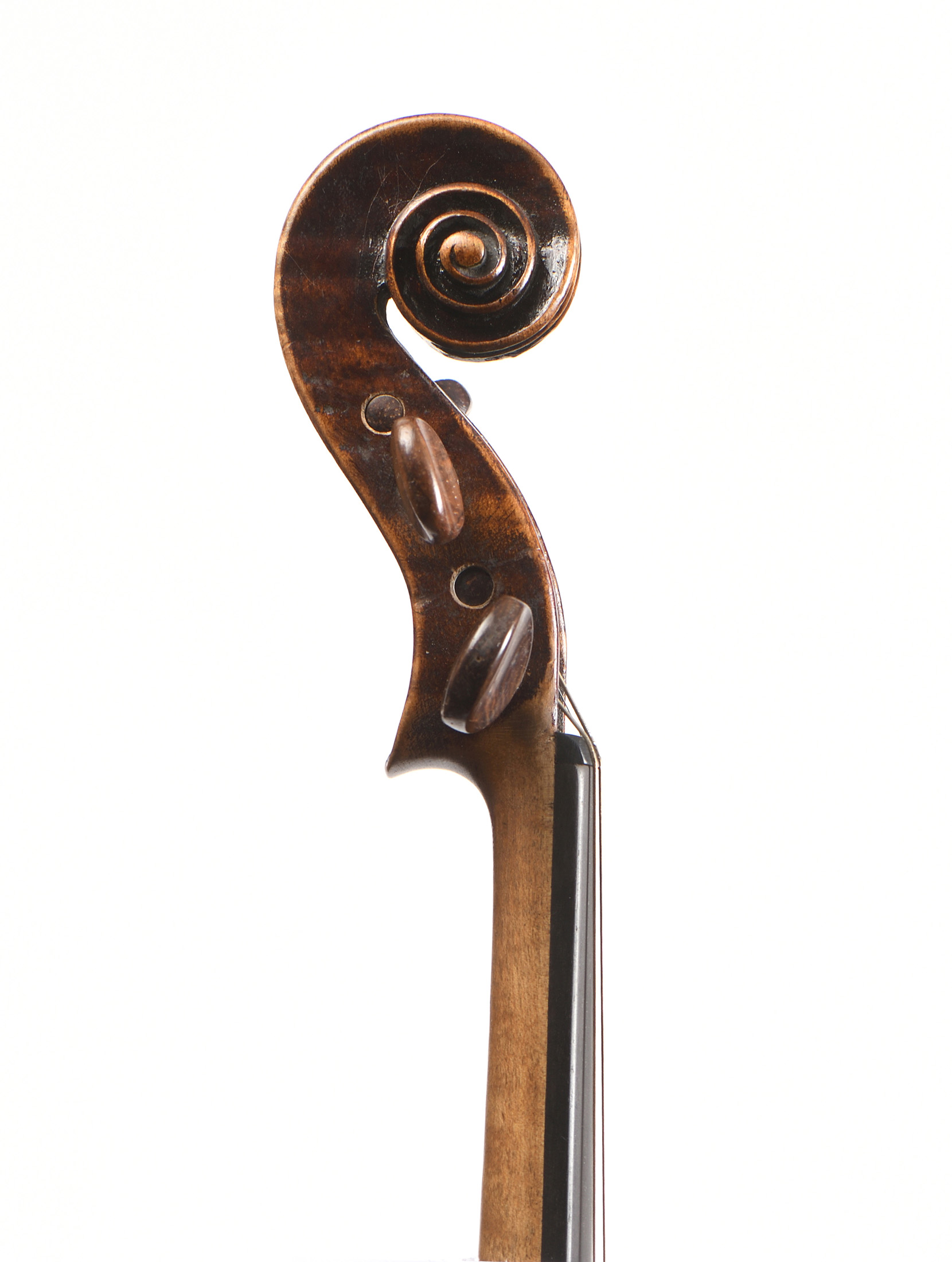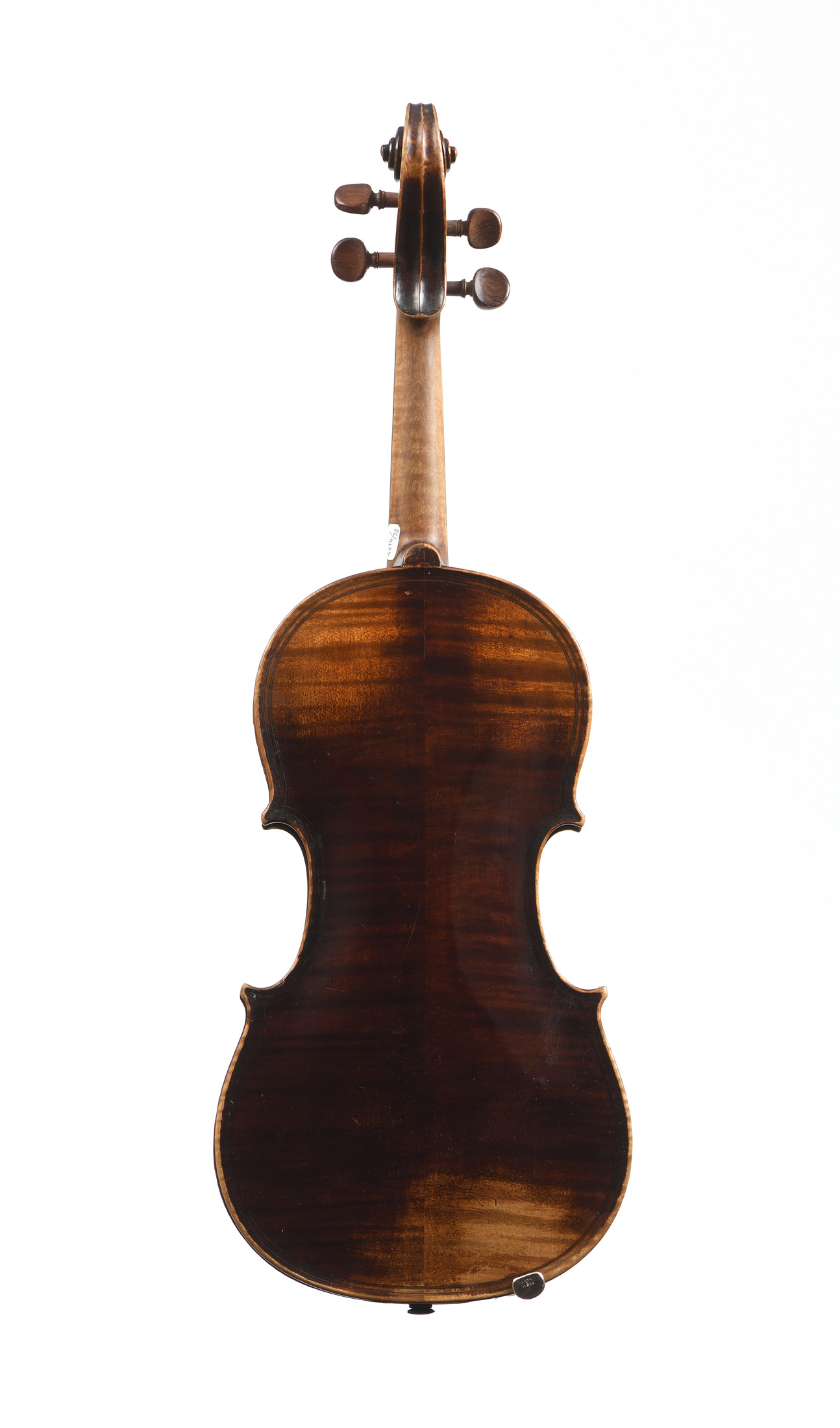 portant une étiquette " Giovan Paolo Maggini 1645". Fond de deux pièces. Vernis brun sur fond doré. Eclisses et tête du même bois. Double filets et volute. 369 mm. Prêt à jouer.