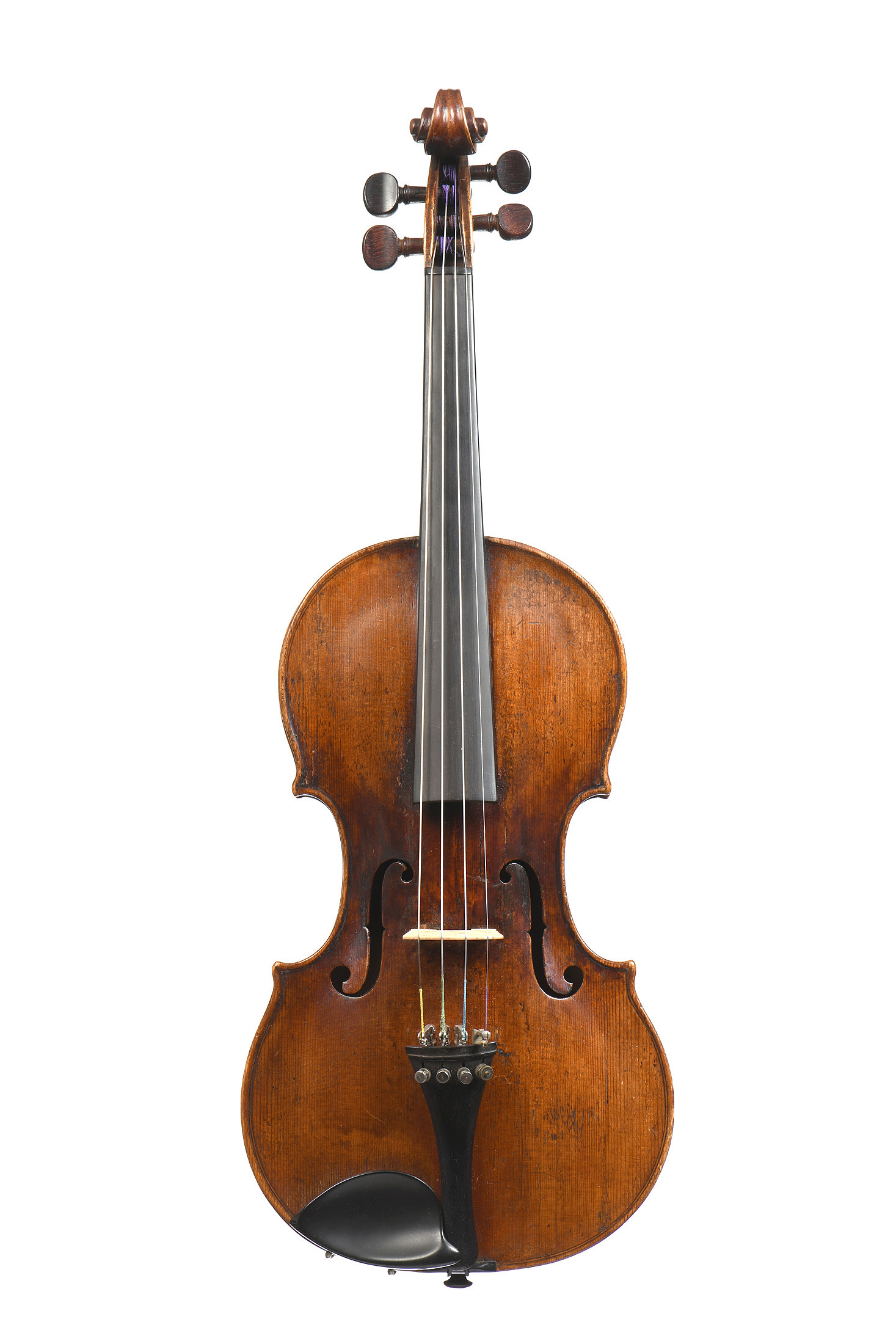 Beau violon Bohémien fait au XVIIIe portant une étiquette apocryphe "Mathias ALBANI in Bulsani Tyroli 1670". Fond d'une pièce sans onde. Table en bel épicéa. Diverses traces de vers, cassures, restaurées. 361 mm. Avec facture ancienne.