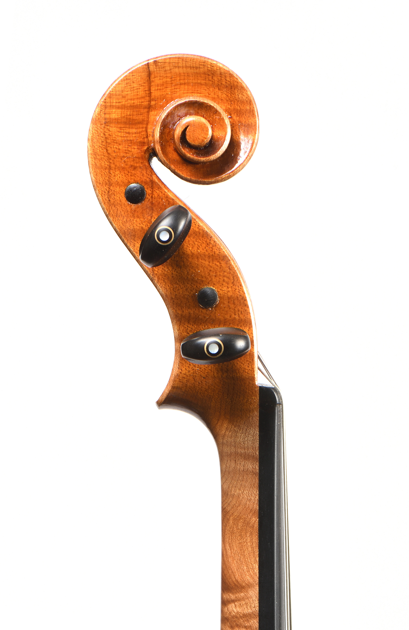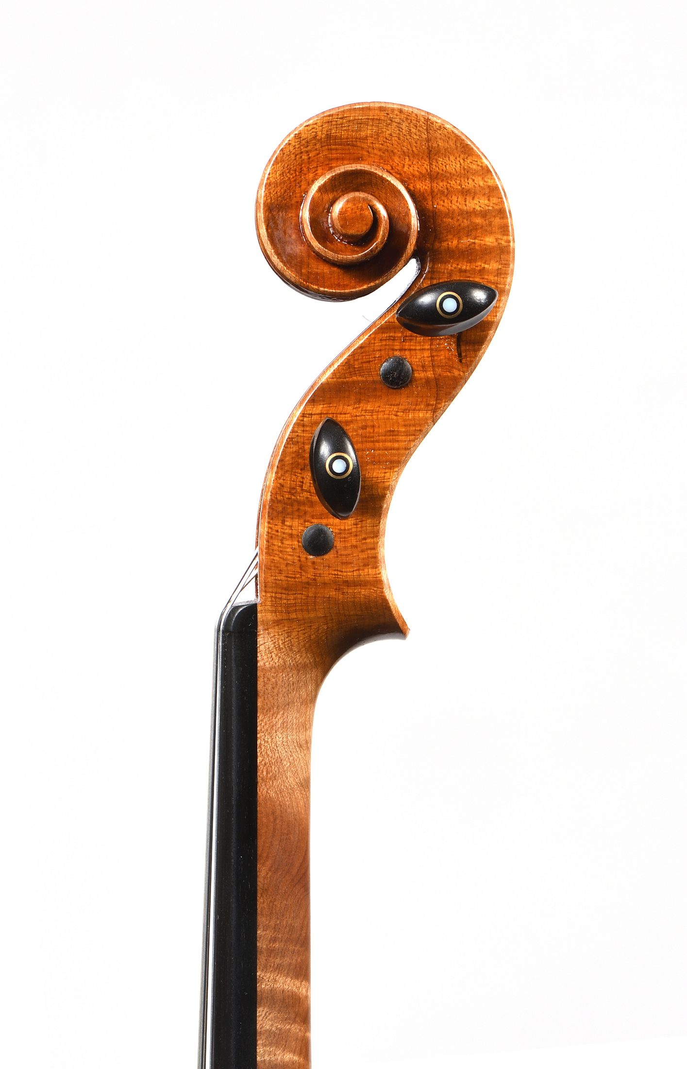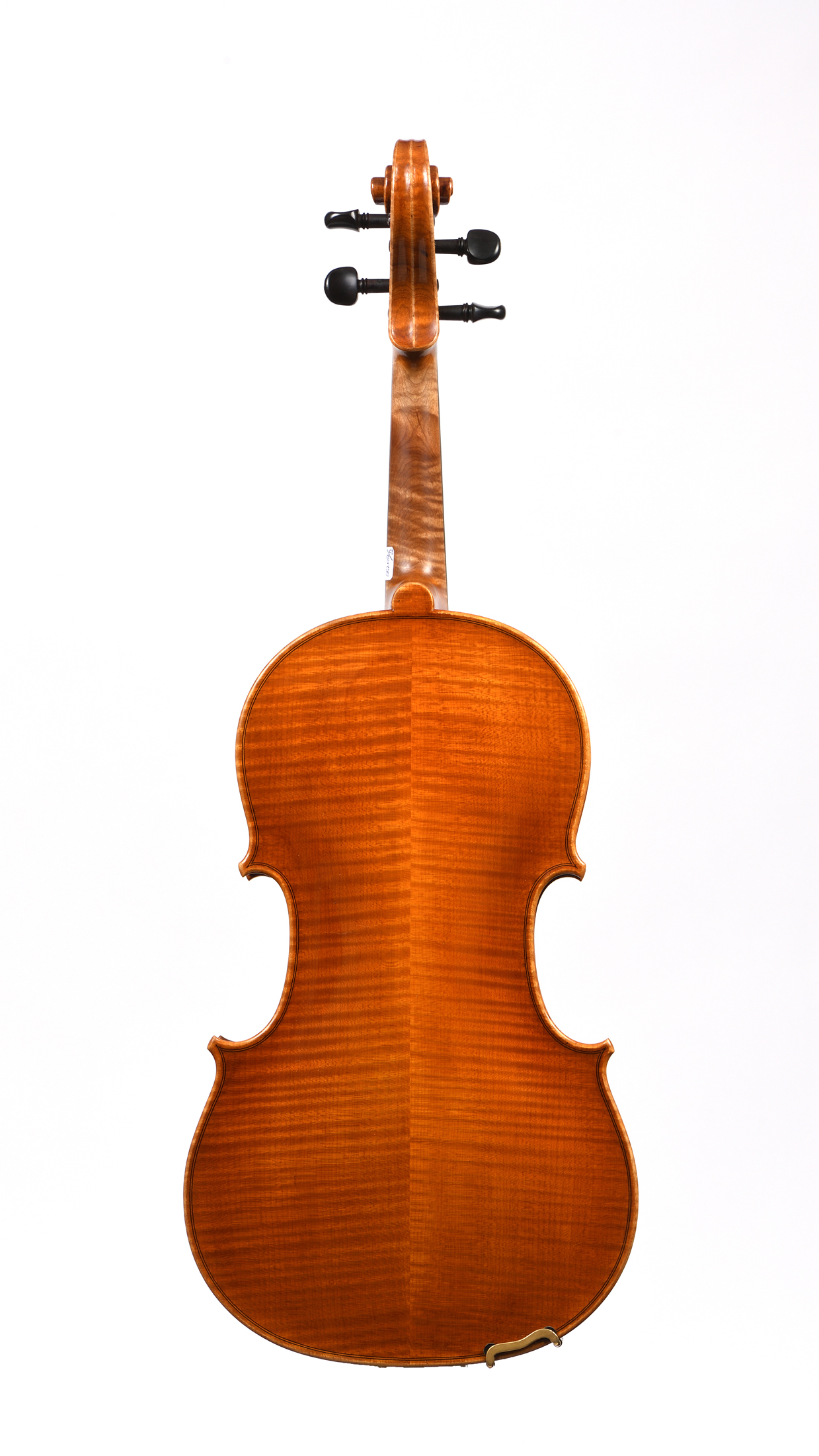 dont il porte l'étiquette originale au millésime de 2016, à YEREVAN, et les marques au fer. Beau fond de deux pièces en érable. Eclisses et tête du même bois. Vernis brun sur fond doré. 410 mm.