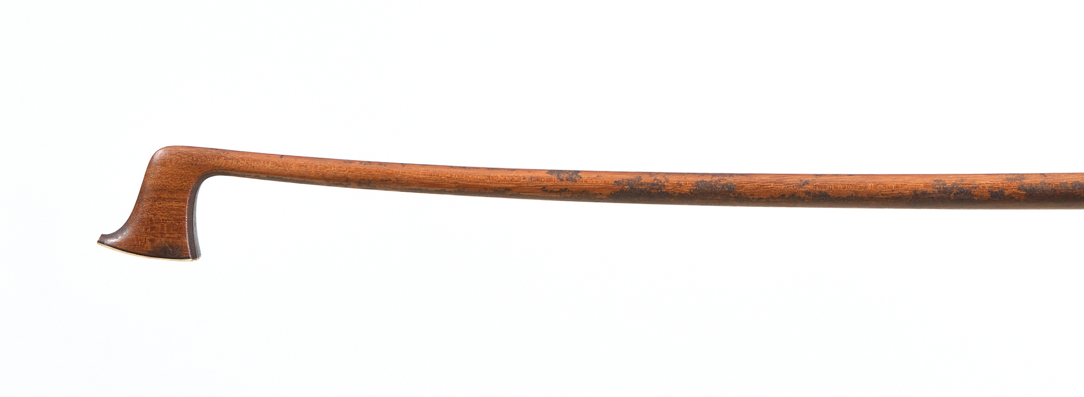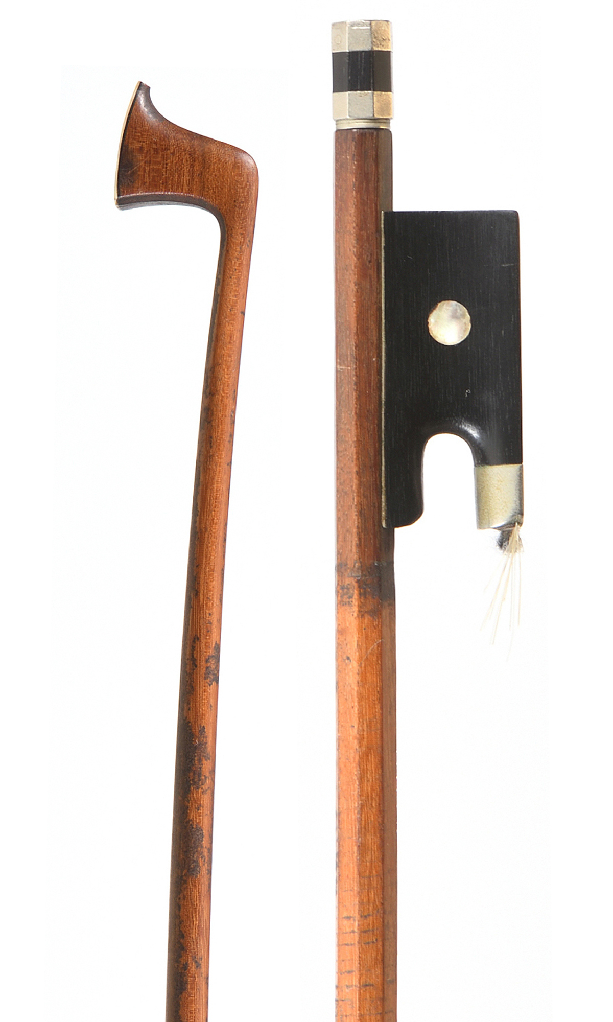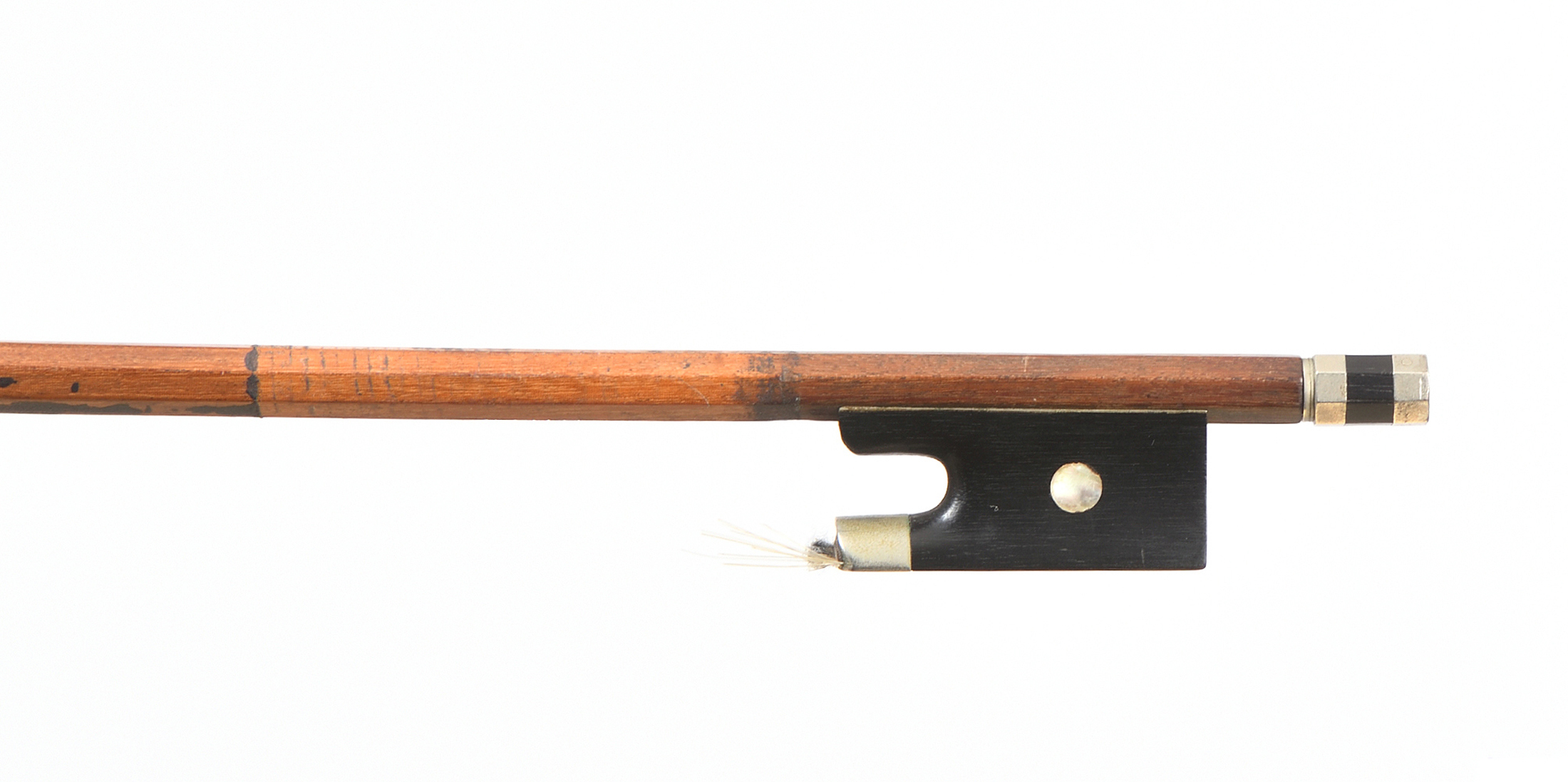 Belle baguette dans le style de Charles HUSSON. Baguette ronde en bois de pernambouc. Hausse ébène montée maillechort. 48,5 g sans mèche, ni garniture. 725 mm.
