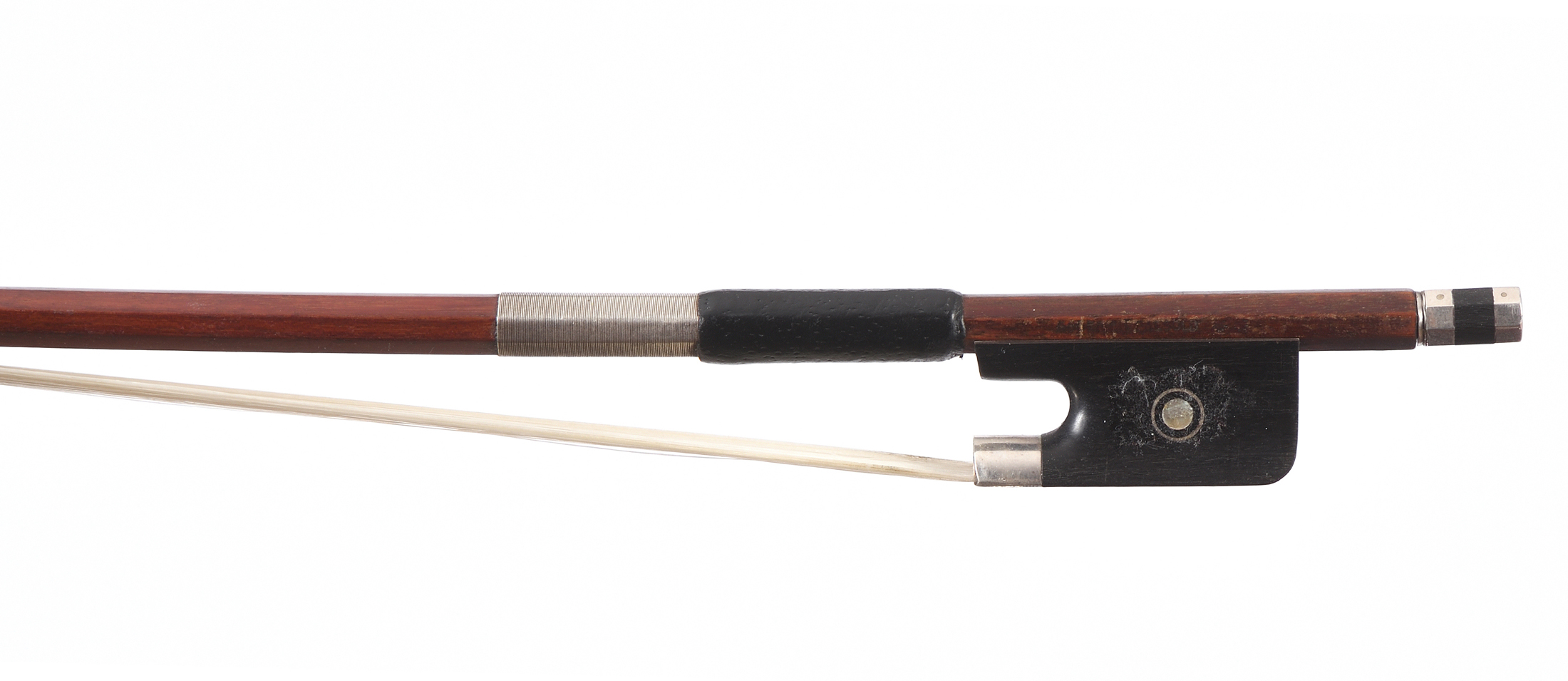 dont il porte une marque "PAESOLD **". Baguette octogonale en bois de pernambouc. Hausse ébène montée maillechort avec grain cerclé. 699 mm. 78,5 g.