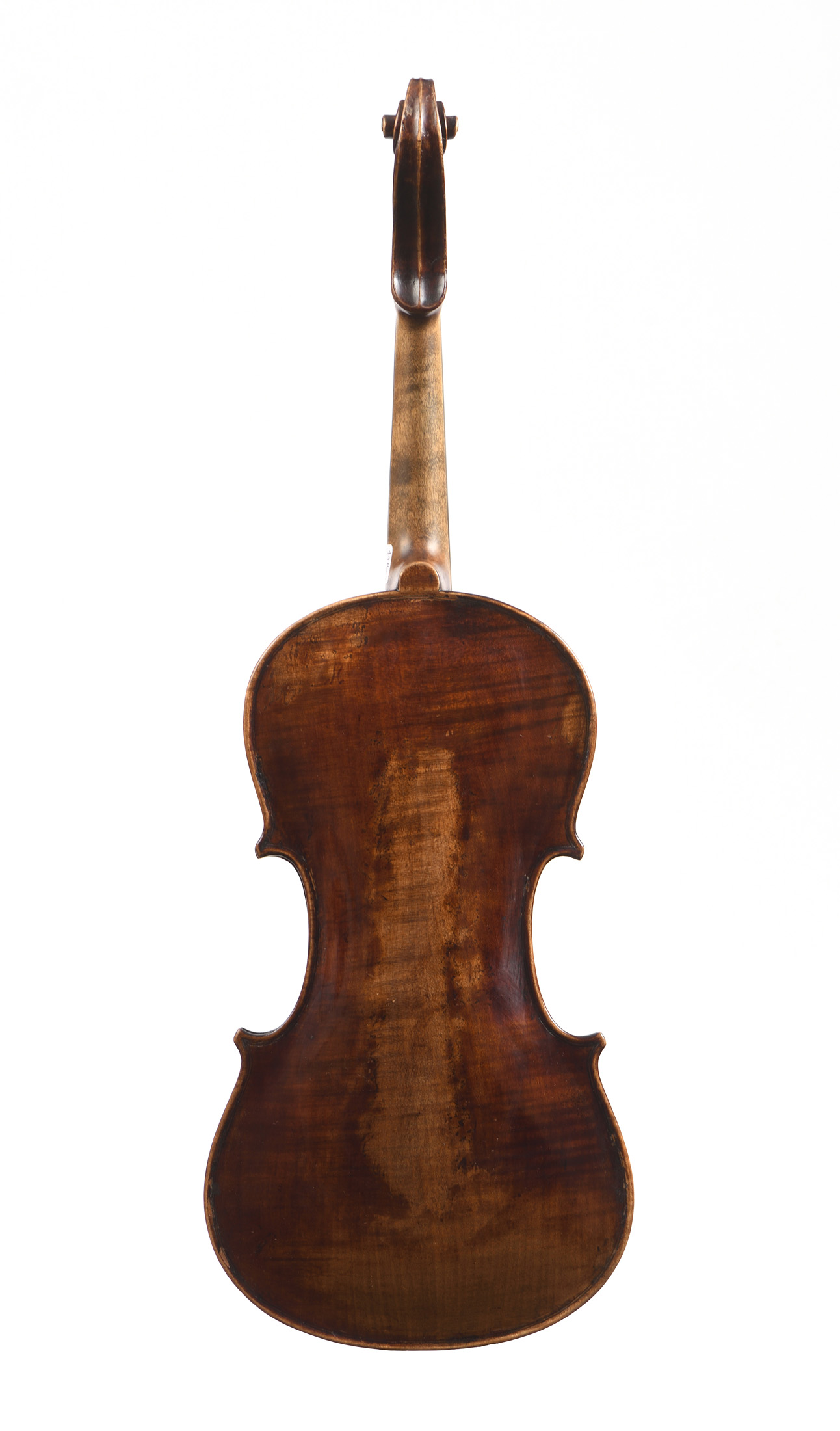 fait à Mittenwald à la fin du XIXe. Fond d'une pièce. Vernis brun sur fond doré. Portant une étiquette Stainer 16...". Doublage à la tête. 354 mm.