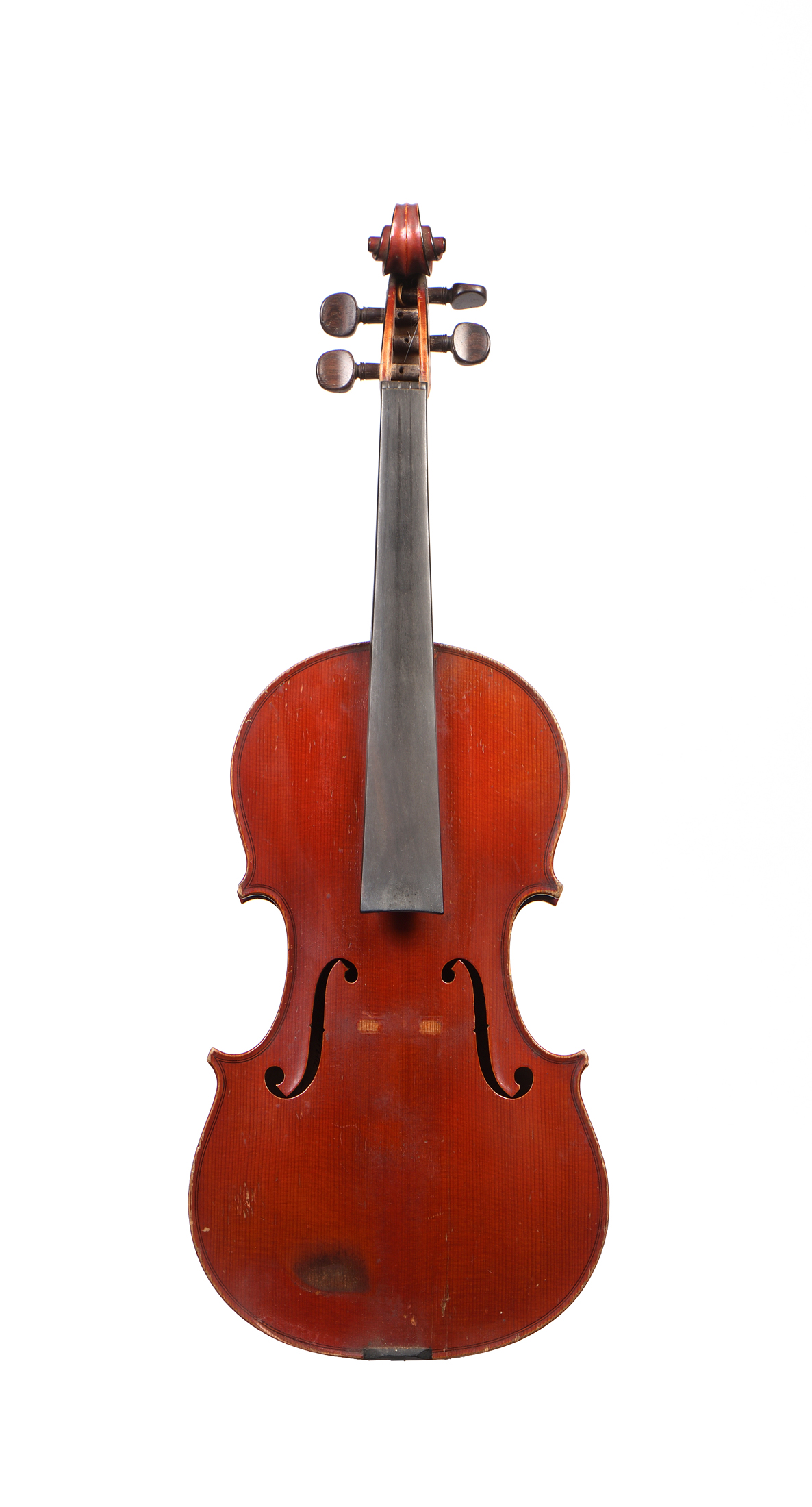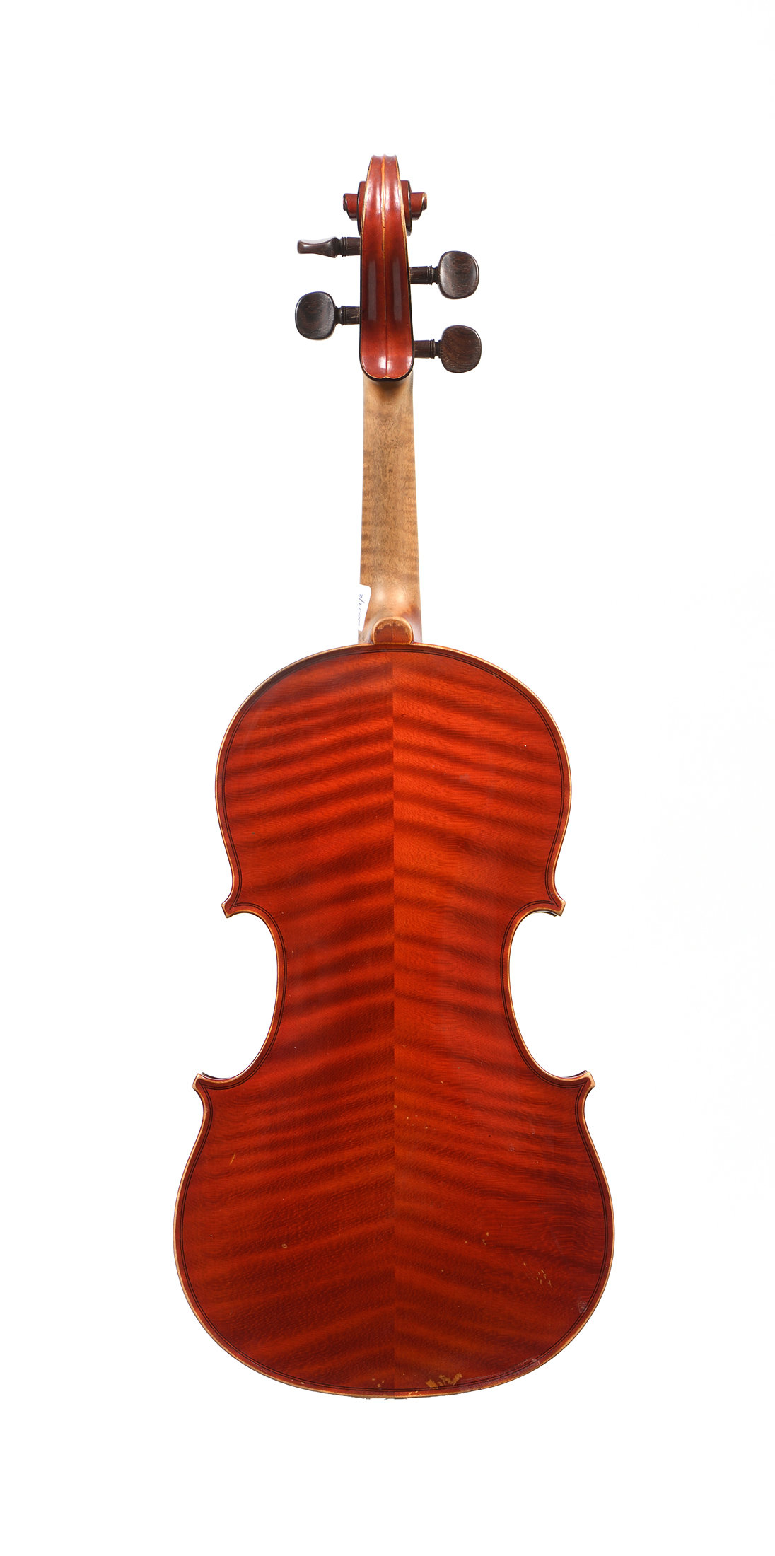 Beau violon fait chez JTL dont il porte l'étiquette, Probablement fait par Emile BLONDELET. " 1908 D'après A. Stradivarius. N°260 J Thibouville Lamy. Fond de deux pièces en érable. Table en épicéa aux pores réguliers. Vernis Brun rouge sur fond doré. Cassures de table. 360 mm.
