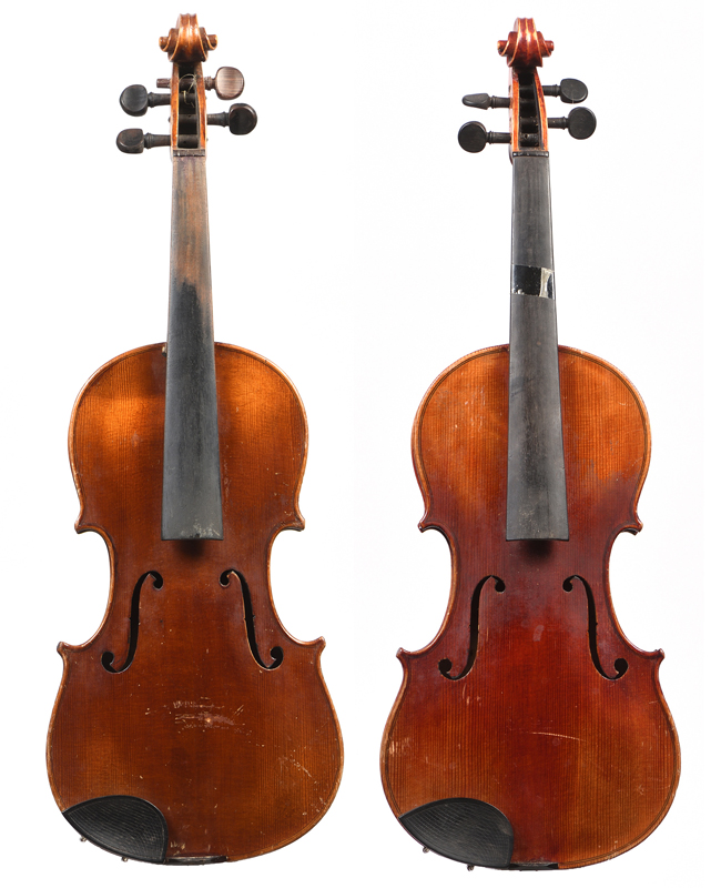 Lot de deux violons 3/4 Allemand fait au début du XXe. Diverses usures.