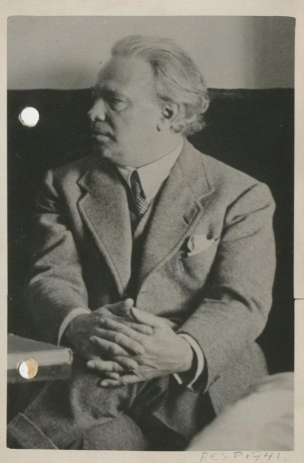 Photographie de Ottorino RESPIGHI. Tirage argentique d'époque. Circa 1925. Cachet d'éditeur au dos. Trouilloté.
