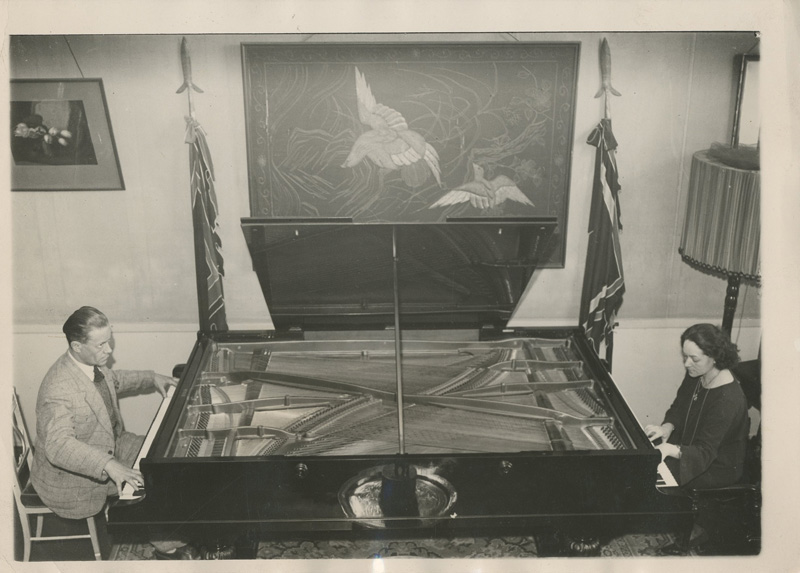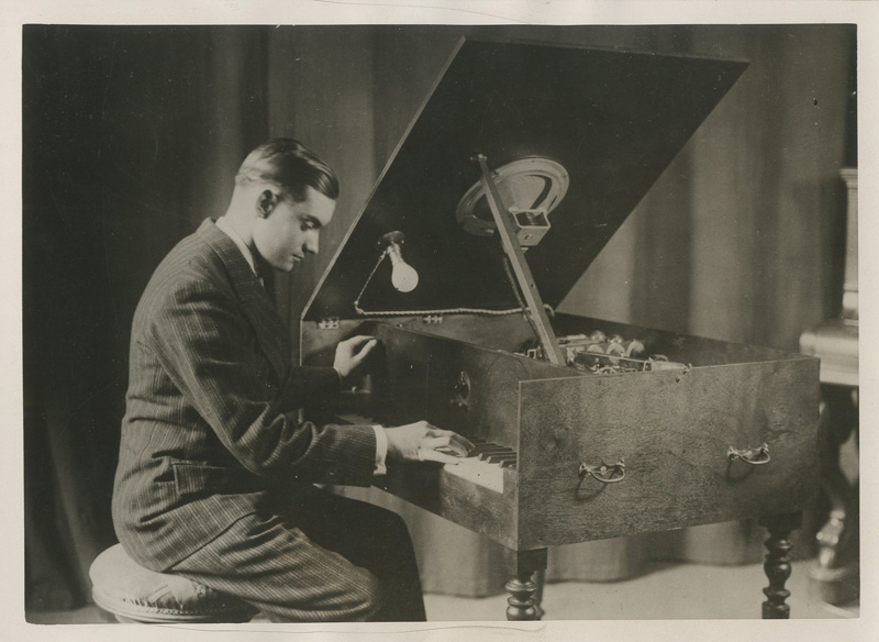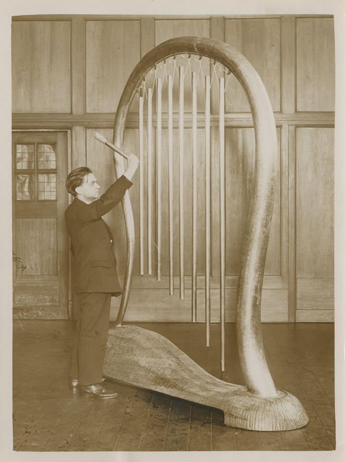 Un Piano double, le violoncelle électrique par l'inventeur M. DESPEYRAUX, Percussions "Wonderful Giant musical instruments". Tirages Argentiques d'époque. Cachet d'agence et légendes tapuscrites au dos.