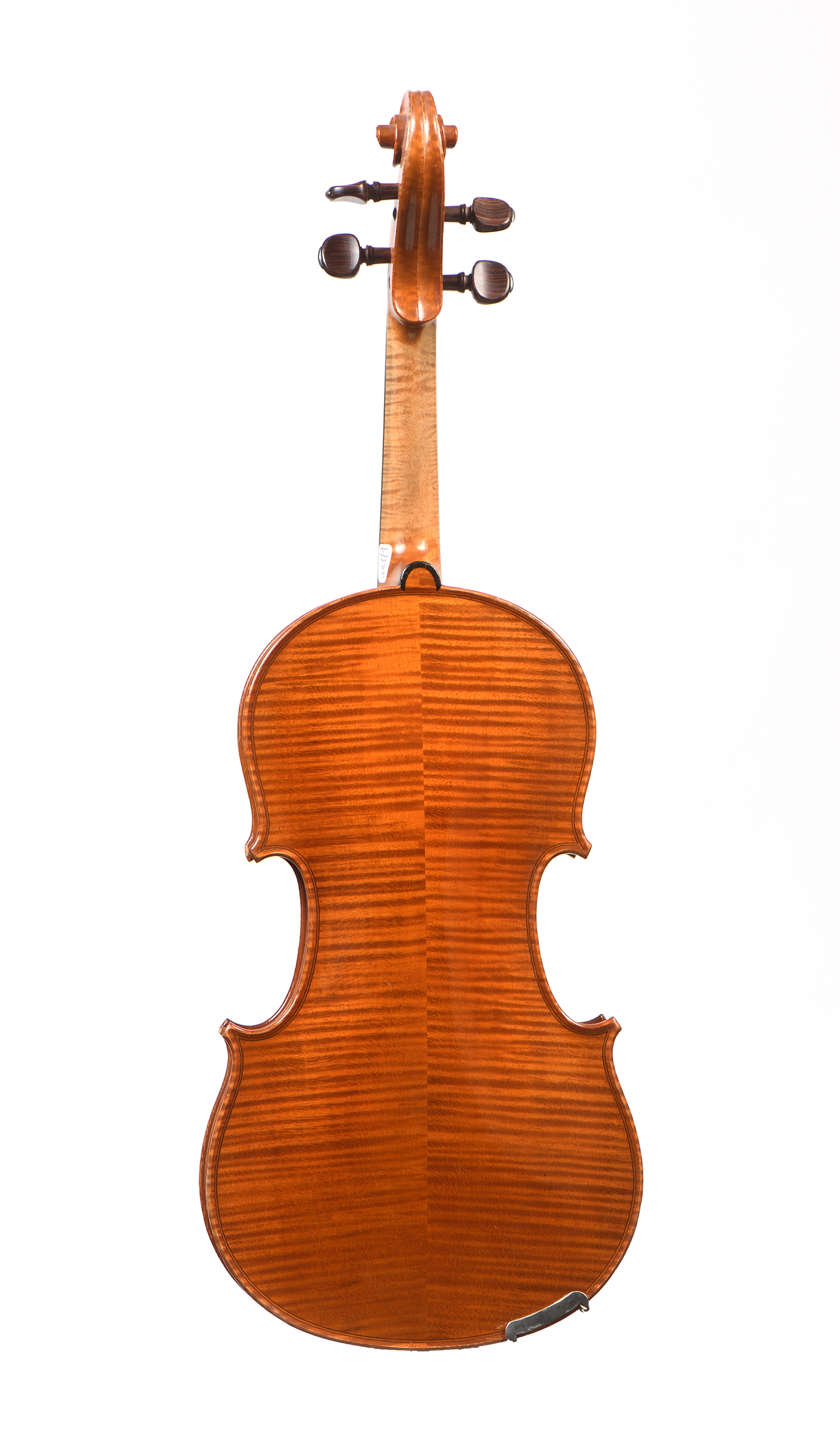 dont il porte l'étiquette originale" H.Emile Blondinet, luthier à Paris, Année 1926..." Ainsi que la marque au fer originale. Fond de deux pièces en bel érable aux ondes fines, régulières. Vernis brun doré. 361 mm. Bon état général.