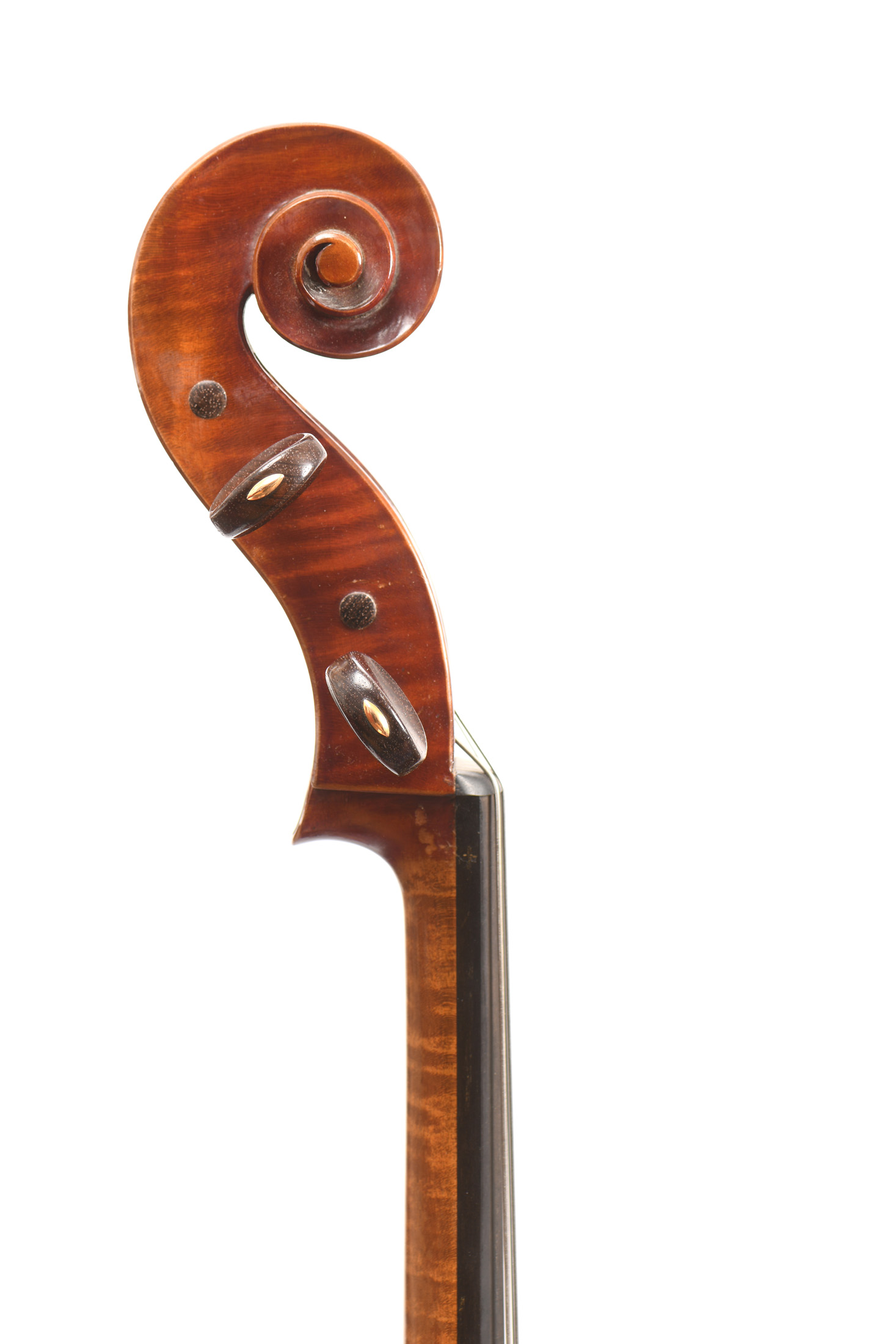 dont il porte l'étiquette originale "CH.J.B.COLLIN-MEZIN 1945, modèle exceptionnel n°17..." Vernis brun rouge. Beau fond de deux pièces en érable. Avec une cassure d'âme restaurée à la table. 763 mm.